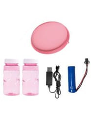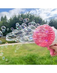 - Łatwy w użyciu i ładowaniu- ergonomiczny uchwyt pistoletu zapewnia wygodne trzymanie i precyzyjne celowanie. Wystarczy napełnić pojemnik płynem i nacisnąć spust, aby rozpocząć pokaz baniek.
