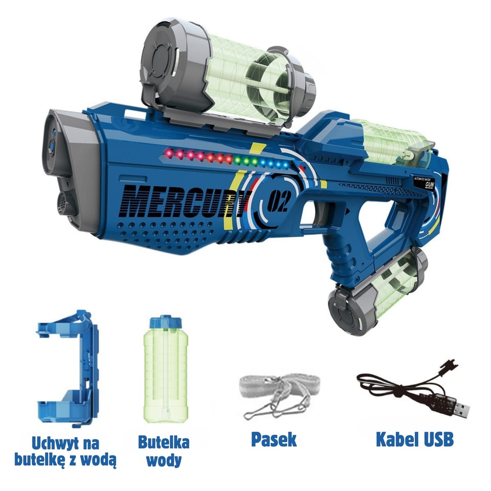 Elektryczny pistolet na wodę MERCURY 02 od marki Woopie to doskonała zabawka na słoneczne letnie dni! Do zabaw zarówno w pojedynkę jak i w grupie. Ten model został zaprojektowany z myślą o maksymalnej wygodzie użytkownika – jest wyposażony w trzy wymienne zbiorniki na wodę, pozwala na długotrwałą zabawę bez częstego uzupełniania "amunicji". Dodatkowo wbudowany akumulator o pojemności 2200mAh zapewnia wiele minut nieprzerwanej akcji po jednym ładowaniu przez dołączony kabel USB. Elektryczny pistolet na wodę pozwoli na aktywne spędzenie czasu na świeżym powietrzu, zapewni dużo zabawy i śmiechu zarówno dzieciom jak i dorosłym.