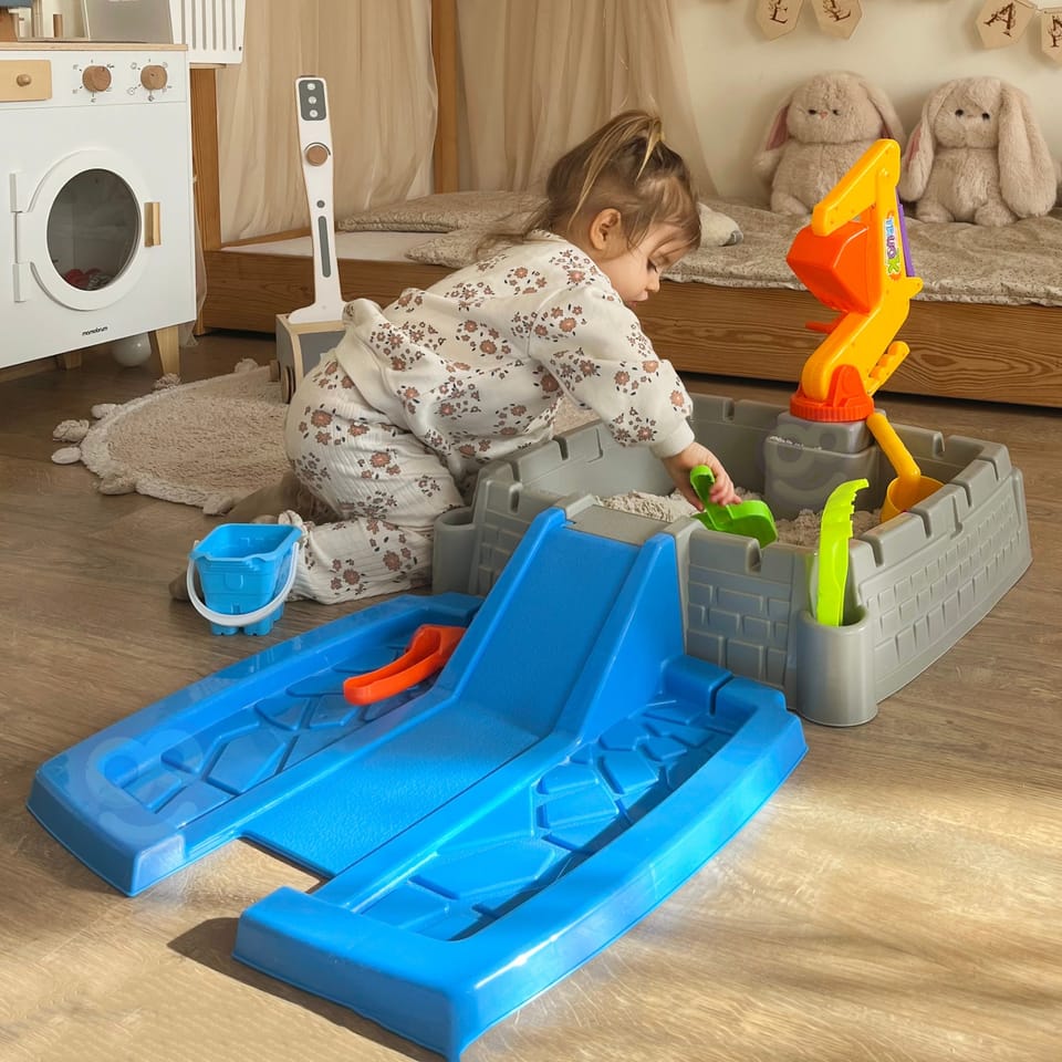 Przenośna piaskownica Zamek od marki WOOPIE to doskonała rozrywka dla dzieci na świeżym powietrzu jak i w domu.Twój ogród, taras, a nawet salon mogą stać się magicznym miejscem pełnym kreatywnej zabawy i niezapomnianych chwil. Piaskownica w kształcie zamku stanowi idealne miejsce do zabawy, zachęcając dzieci do tworzenia piaskowych królestw i fortec. Zestaw zawiera wszystkie niezbędne akcesoria, a ruchome ramię koparki sprawia, że zabawa nabiera nowego wymiaru.Po skończonej zabawie wystarczy zamienić wjazd do zamku, na funkcjonalną pokrywę piaskownicy. Stwórz dziecku przestrzeń, w której będzie mogło oddać się nieskończonej zabawie, rozwijać swoje umiejętności i cieszyć się każdą chwilą. Zestaw Piaskownica Zamek to więcej niż zabawka – to narzędzie do rozwijania wyobraźni i odkrywania świata!Charakterystyka: