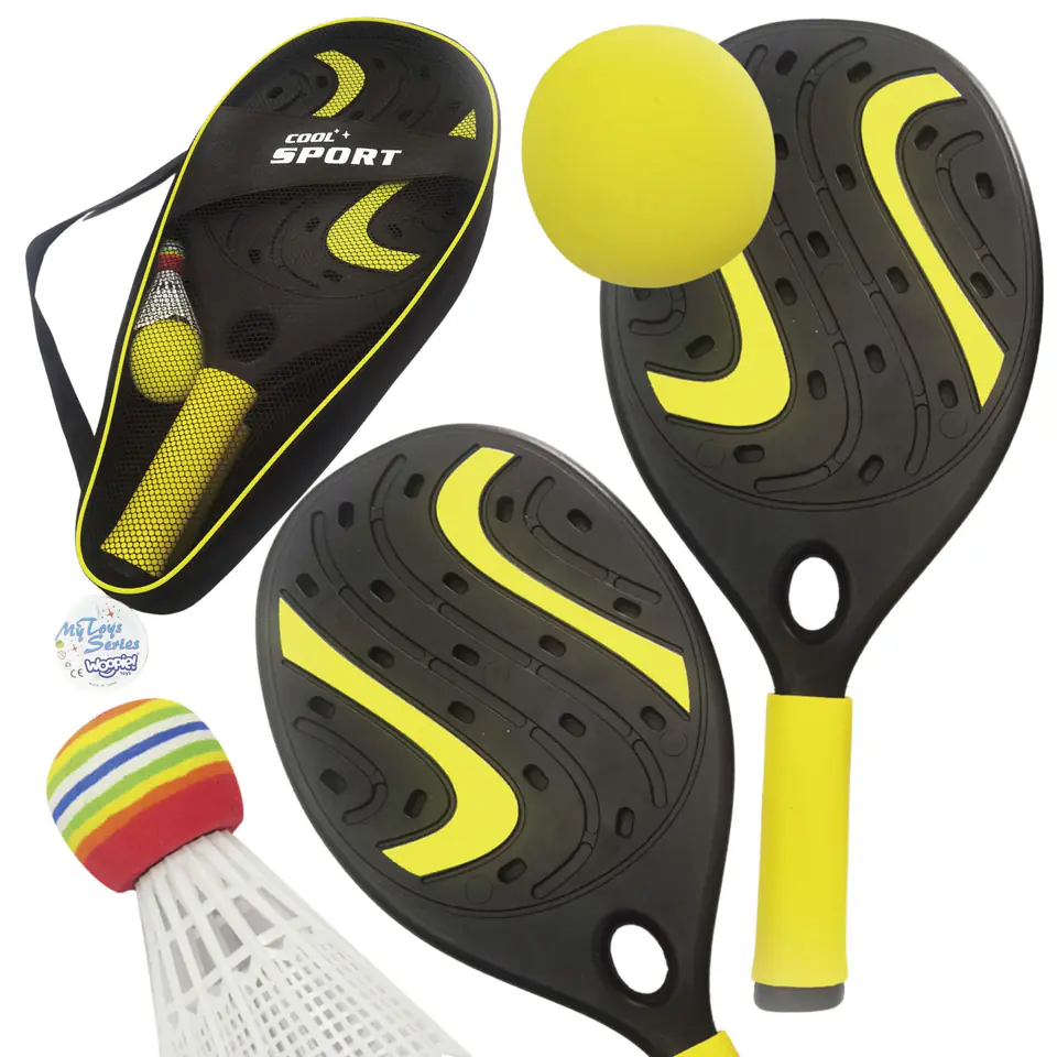 Zestaw rakiet od marki WOOPIE, to super pomysł na aktywne spędzanie czasu w ciepłe dni. Piękny wzór i dobra jakość to gwarancja dobrej zabawy! Zestaw zawiera dwie wytrzymałe rakiety, piłkę wykonaną z miękkiej gąbki oraz lotkę- dzięki temu razem z rakietkami WOOPIE możesz zagra w różne gry sportowe! Dla wygodnego transportu i przechowywania, zestaw spakowany jest do dobrej jakości, zasuwanego etui.