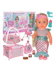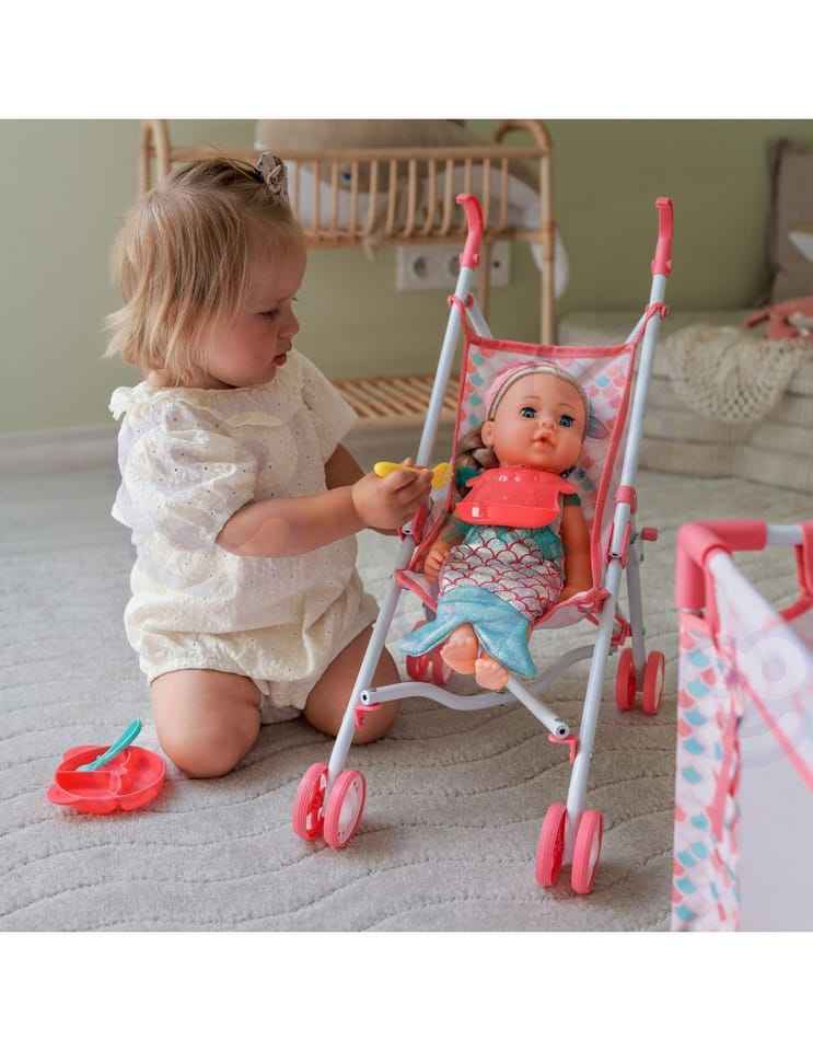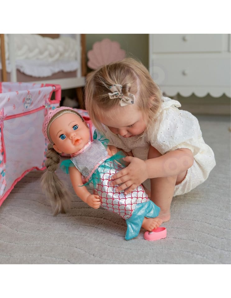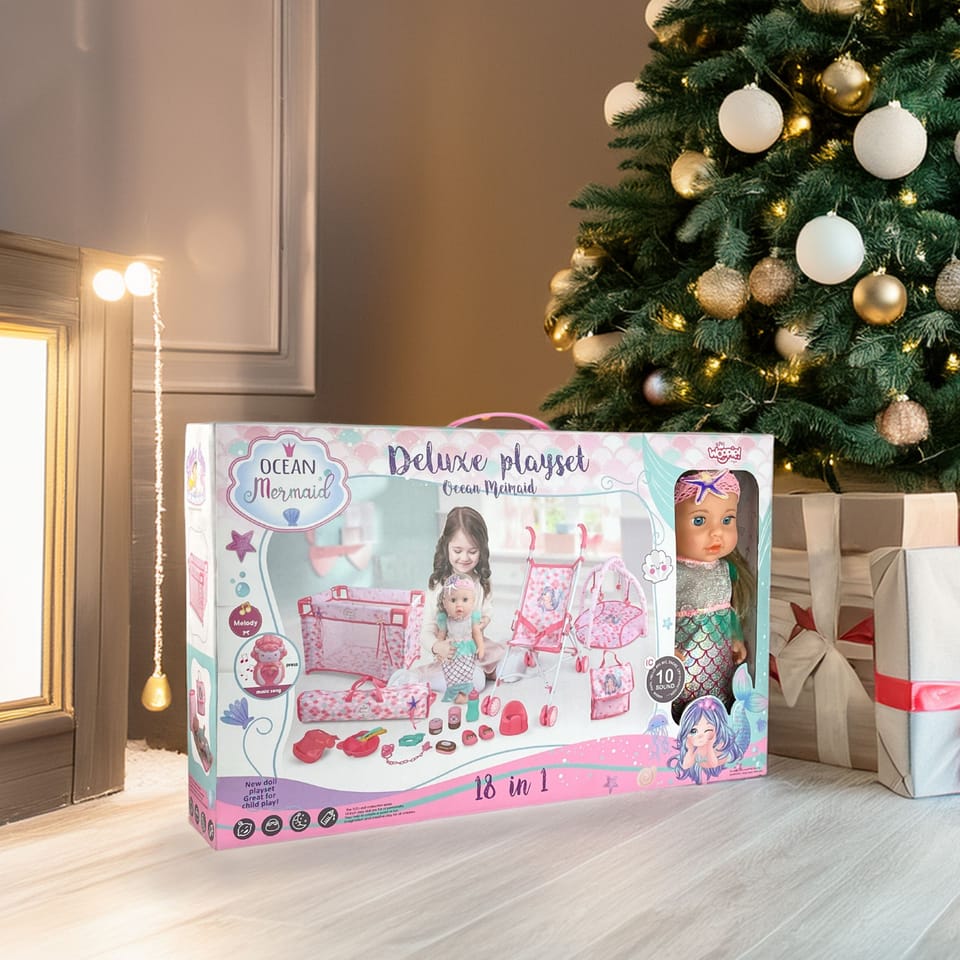 Odkryj bajkowy świat morskich przygód z wyjątkowym zestawem Deluxe Playset Ocean Mermaid 18 w 1! Ten bogaty komplet to gwarancja wielu godzin kreatywnej i radosnej zabawy. Największą atrakcją jest urocza Lalka Syrenka, która wydaje aż 10 różnych dźwięków, zachwycając każdą małą fankę oceanu. W komplecie znajdziesz wózek, łóżeczko, torby oraz liczne akcesoria, które pozwolą bawić się w opiekę i odgrywanie ról. To doskonały prezent, który wspiera rozwój wyobraźni, empatii i umiejętności społecznych dziecka!