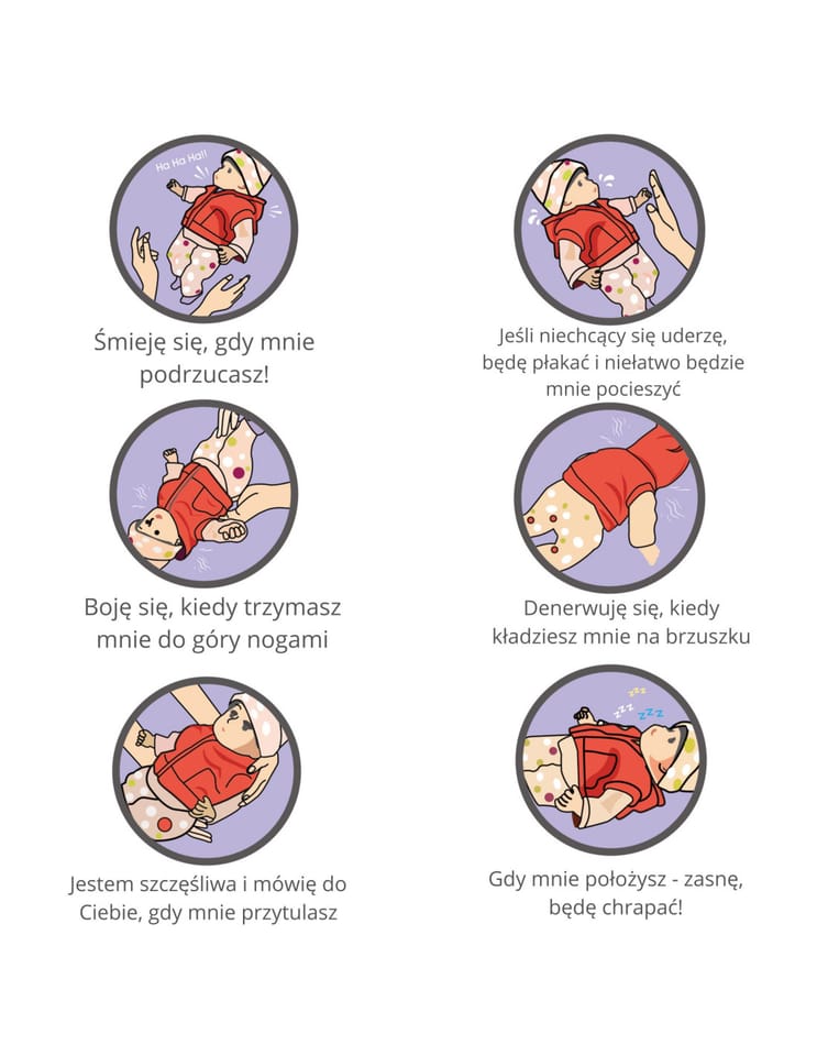 - -Interaktywna lalka reagująca na bodźce
