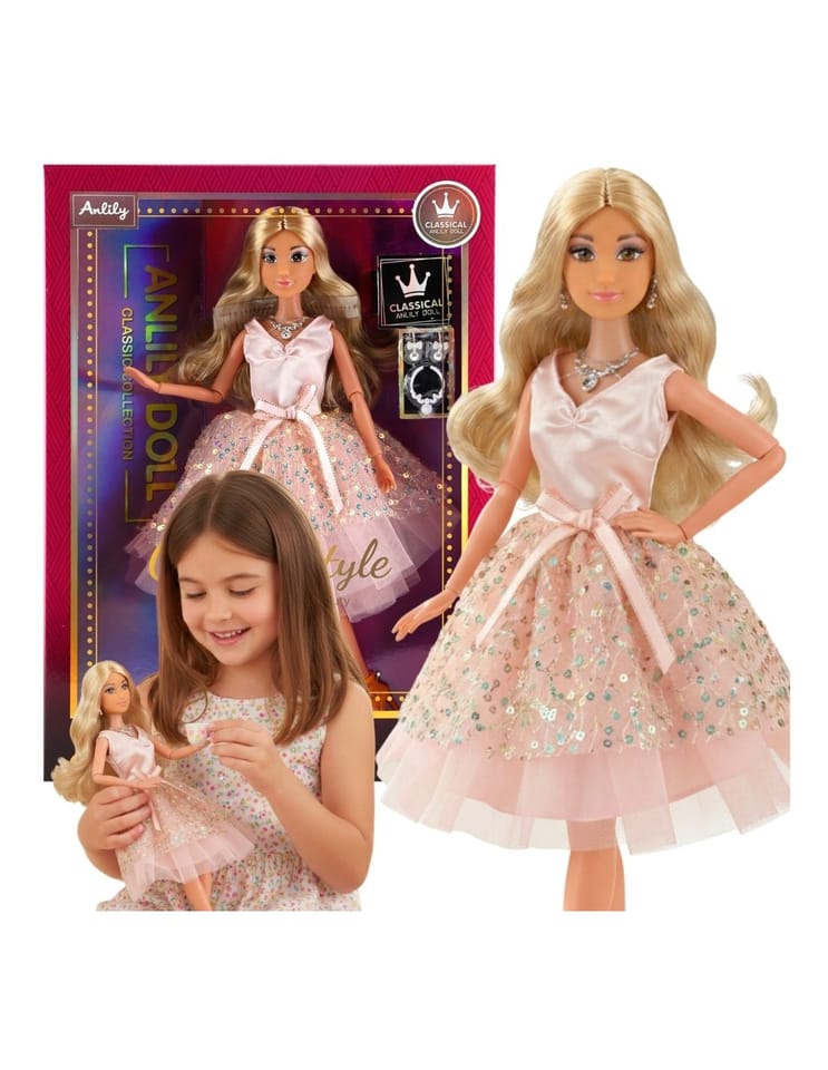 Poznaj wyjątkową lalkę Lily marki Woopie, która zachwyci każdą małą miłośniczkę elegancji i balowych kreacji! Ta urocza 30-centymetrowa lalka prezentuje się zjawiskowo w delikatnej sukni z połyskiem różu, delikatnym tulem i uroczy koralikami. Długie, złociste włosy Lily do ramion kuszą do nieskończonych stylizacji i tworzenia bajkowych fryzur, a modne dodatki – delikatny naszyjnik, kolczyki i eleganckie buciki dopełniają jej wyjątkowy image.