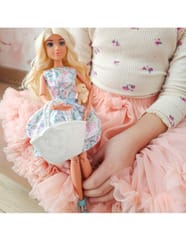 - - Lalka z długimi włosami w kwiatowej sukience