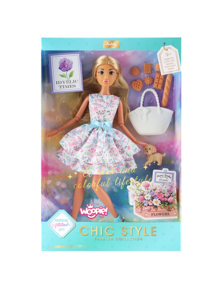 Poznaj czarującą lalkę Lily marki Woopie, która przeniesie Twoje dziecko w świat pełen elegancji i niekończących się stylizacji! Ta piękna lalka o długich, blond włosach zachwyca swoją delikatną pastelową kreacją w kwiatowe wzory i obfitym zestawem akcesoriów, które tworzą kompletny świat modowych przygód. Bogata zawartość zestawu to zaproszenie do kreatywnych scenek, tworzenia własnych historii i zabawy w stylistkę.