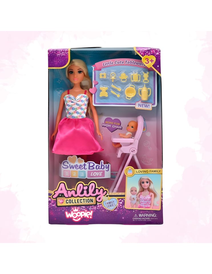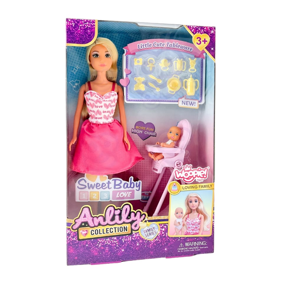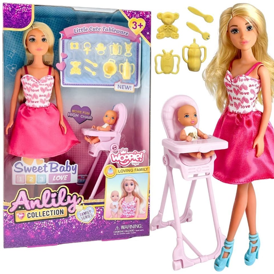 Lalka Lily z bobasem od marki Woopie to wyjątkowy zestaw do odgrywania scenek rodzinnych i codziennej opieki nad dzieckiem. Realistyczne detale, dodatki i akcesoria sprawiają, że zabawa staje się jeszcze bardziej angażująca i edukacyjna. Lalka ubrana jest w kolorową, stylową sukienkę i posiada długie, czesane włosy, które można stylizować w różnorodne fryzury. Bobas to uroczy maluszek, który czeka na karmienie w wysokim krzesełku – takim samym, jakie można spotkać w prawdziwych domach. Dziecko może użyć dołączonych akcesoriów: talerzyków, buteleczek, dzbanków i sztućców, by „nakarmić” bobasa, dbając o niego jak prawdziwa mama. Dzięki tej zabawce dziecko nie tylko spędza kreatywnie czas, ale również rozwija emocje, wyobraźnię oraz umiejętności manualne. To świetne narzędzie do zabawy w odgrywanie ról, które pozwala najmłodszym zrozumieć relacje międzyludzkie i codzienne obowiązki w ciepłej, domowej atmosferze.