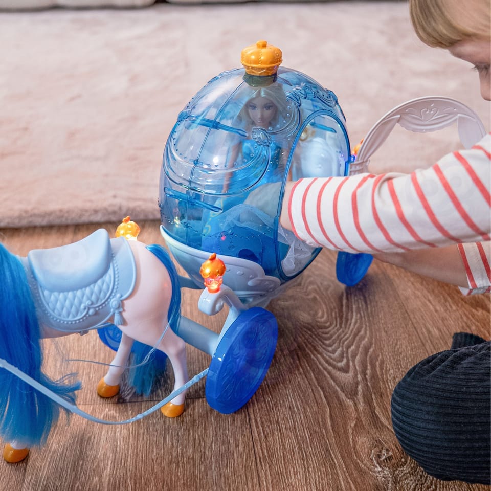 Wyrusz w magiczną podróż do krainy lodu z zestawem LODOWA KSIĘŻNICZKA I MAGICZNY POWÓZ ŚWIECĄCY od marki Woopie! Ten bajkowy zestaw to idealny prezent dla małych królowych śniegu od 3 roku życia. W skład zestawu wchodzi piękna lalka księżniczka w błękitnej, połyskującej sukni, elegancki biały koń oraz duży lodowy powóz w kształcie dyni. Powóz ma unikalny, błękitny, przezroczysty design i posiada niesamowite efekty świetlne podczas zabawy. Lalka ma długie blond włosy i królewski diadem. Odgrywanie ról nigdy nie było tak wciągające!
