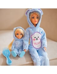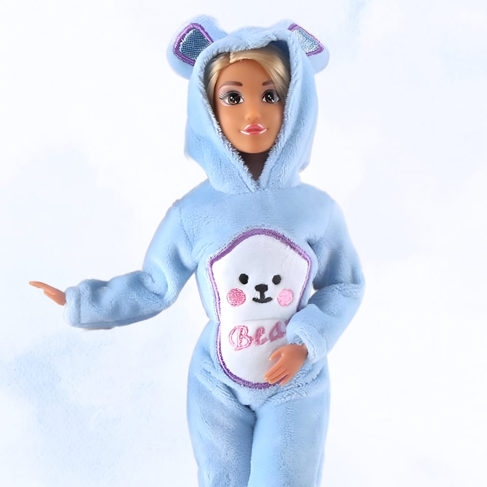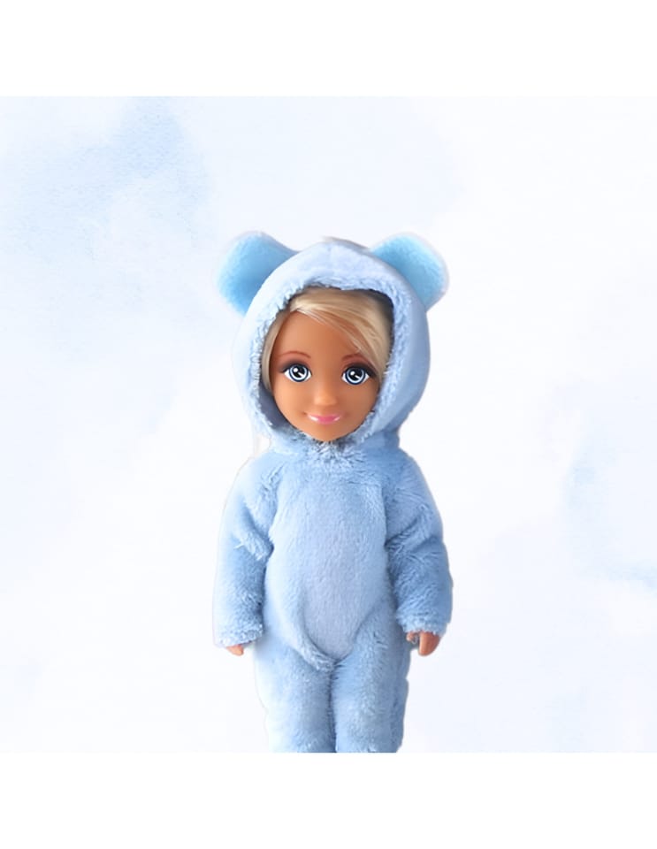 - - lalki ubrane w dopasowane niebieskie kombinezony misie