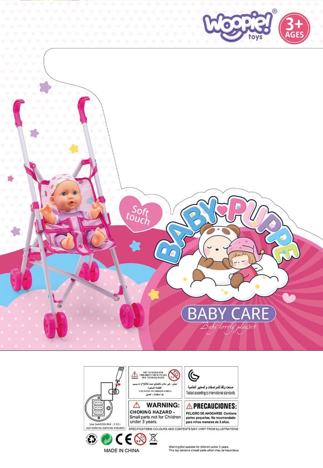 Lalka Bobas z Wózkiem i Zestawem do Karmienia od marki WOOPIE to idealna pierwsza lalka dla dziecka chcących naśladować zachowania dorosłych w opiece nad dziećmi. Lalka wydaje dźwięki tj. mama, tata, płacz czy śmiech co nadaje zabawie jeszcze większego realizmu. Dziecko może ją karmić czy wyprowadzać na spacerki dzięki spacerówce która jest dołączona w zestawie.