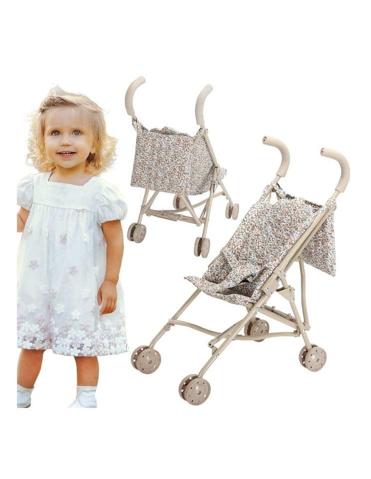 Wózek spacerówka dla lalek z kwiecistym wzorem od marki Woopie to idealna zabawka dla każdej dziewczynki, która uwielbia bawić się w dom i opiekować swoimi ulubionymi laleczkami lub pluszakami. Dzięki lekkiej, składanej konstrukcji jest łatwy do przenoszenia i świetnie sprawdzi się zarówno w domu, jak i podczas spacerów na świeżym powietrzu. Wygodne uchwyty dopasowane do dziecięcych dłoni oraz podwójne kółka zapewniają komfort jazdy. Stylowa tapicerka w kremowym kolorze z uroczym wzorem w kwiatki dodaje mu wyjątkowego charakteru. To wspaniała propozycja na prezent, który rozwija wyobraźnię, empatię i zdolności manualne dziecka.