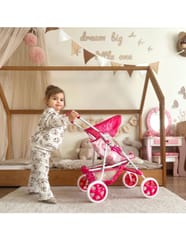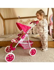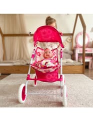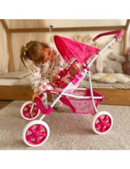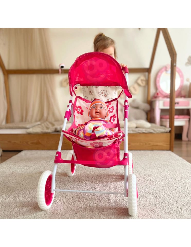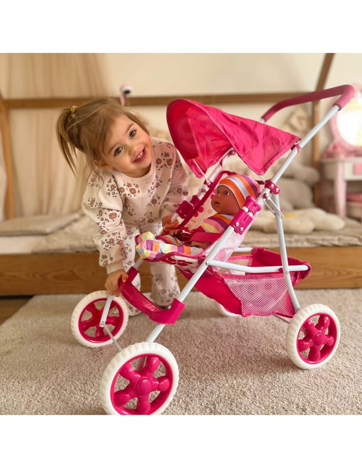 Wózek dla lalek marki Woopie to idealny wybór dla każdej małej miłośniczki zabawy w dom. Wyróżnia się lekką, ale bardzo stabilną ramą, co zapewnia wygodę i bezpieczeństwo podczas użytkowania. Wyposażony w podnóżek, budkę chroniącą przed słońcem, pasy bezpieczeństwa oraz praktyczny koszyk na drobiazgi, gwarantuje pełną funkcjonalność i komfort. Dodatkowo posiada miękką rączkę, która ułatwia prowadzenie, oraz ciche, przyczepne piankowe koła, idealne zarówno do domu, jak i na spacer. Po zakończonej zabawie wózek można łatwo złożyć, co pozwala zaoszczędzić miejsce podczas przechowywania. Stylowy design czyni go wyjątkowym dodatkiem do każdej lalki.