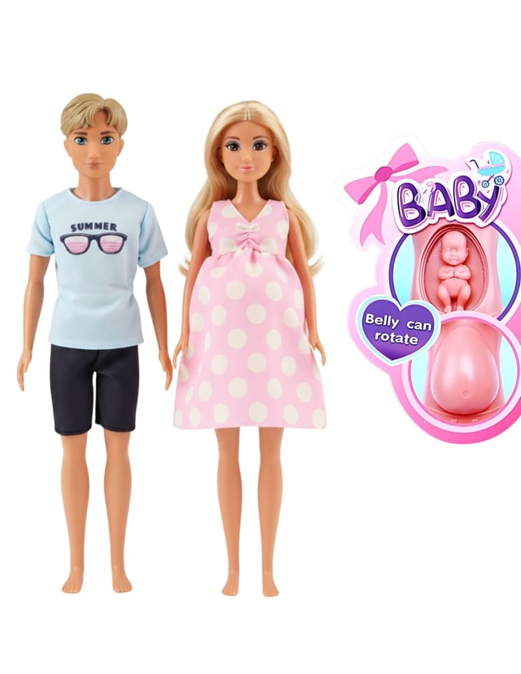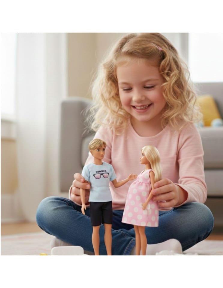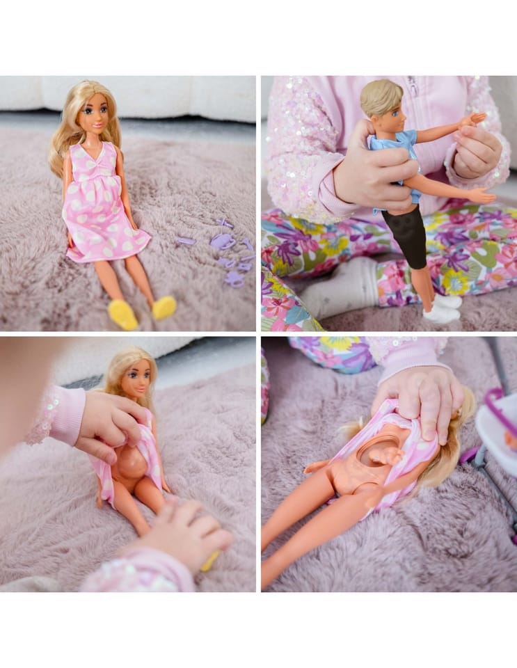 Zestaw lalek rodzinnych od marki Woopie to prawdziwa gratka dla każdego dziecka, które uwielbia odgrywać scenki z codziennego życia i tworzyć własne historie. Komplet obejmuje trzy lalki przedstawiające rodzinę: mamę w ciąży z niemowlakiem w brzuszku oraz tatę. Mama jest ubrana w różową sukienkę z białymi kropkami i białe buciki, natomiast tata w koszulkę z krótkim rękawkiem i krótki spodenki. Zestaw jest wykonany z wysokiej jakości, bezpiecznych materiałów, zestaw został zaprojektowany z myślą o najmłodszych użytkownikach. Kolorowa stylistyka, modny wygląd postaci przyciągają uwagę dzieci i zachęcają do wielogodzinnej zabawy. Zabawa tym zestawem uczy dzieci o cyklu życia, rolach rodzicielskich, wzajemnej opiece i odpowiedzialności związanej z posiadaniem dziecka. Dzieci mogą odgrywać różnorodne scenki rodzinne, tworzyć własne historie o życiu rodzinnym, co stymuluje kreatywność i rozwój emocjonalny. Całość zapakowana jest w atrakcyjne pudełko, idealnie nadające się na prezent.