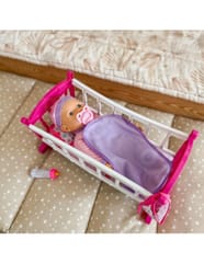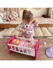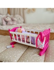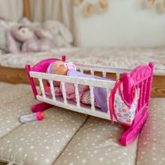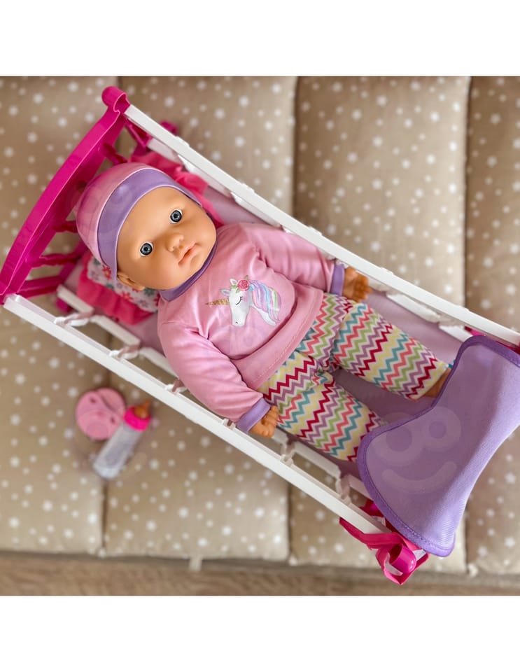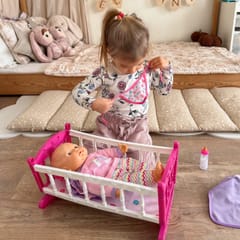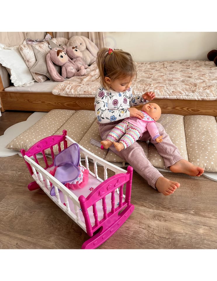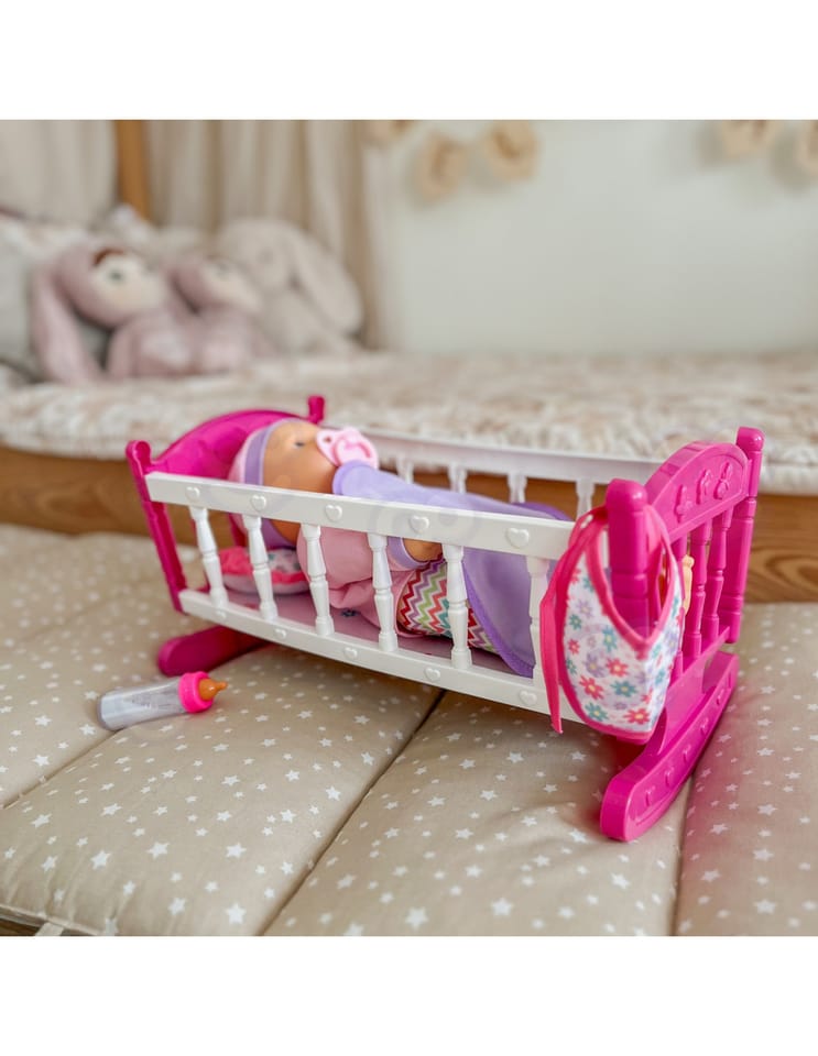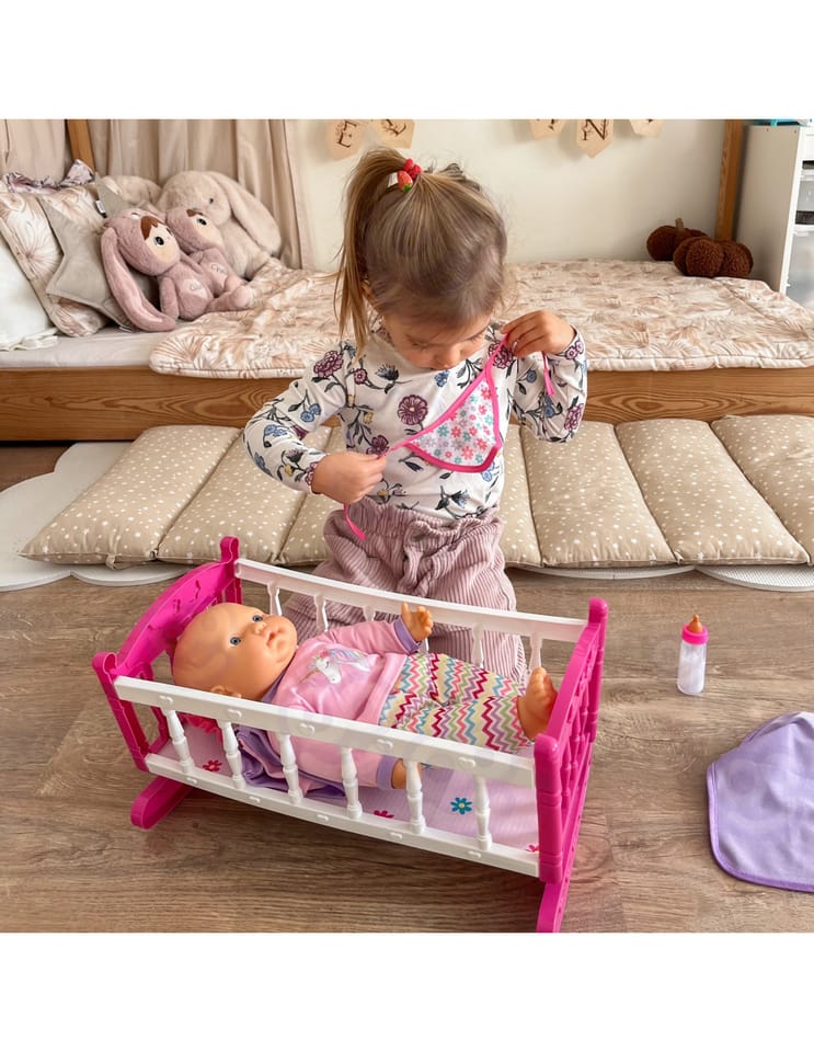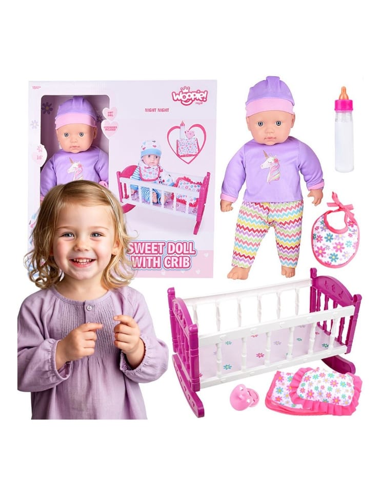 Odkryj magiczny świat opieki nad maluszkiem z uroczą lalką w komplecie z różowym łóżeczkiem marki Woopie! Ten wspaniały zestaw to idealny wybór dla maluchów, którzy uwielbiają zabawy w dom. Miękka materiałowa lalka o realistycznych rysach twarzy ubrana jest w fioletowy strój z czapeczką, a w zestawie znajdziesz wszystko, co potrzebne do codziennej opieki nad bobasem. Kolorowe, bezpieczne wykonanie sprawia, że zabawa staje się jeszcze bardziej angażująca i rozwijająca.