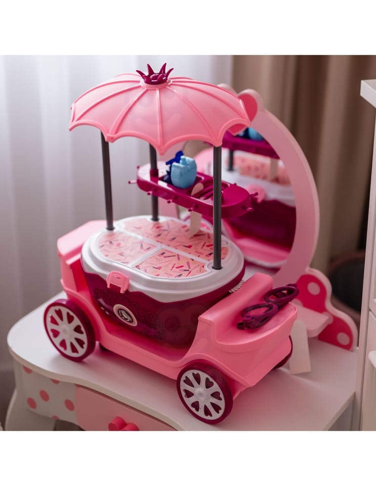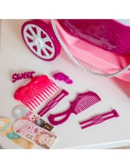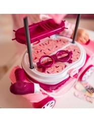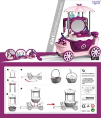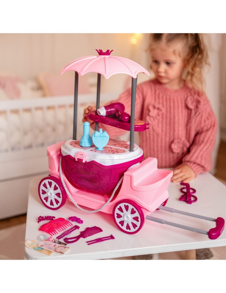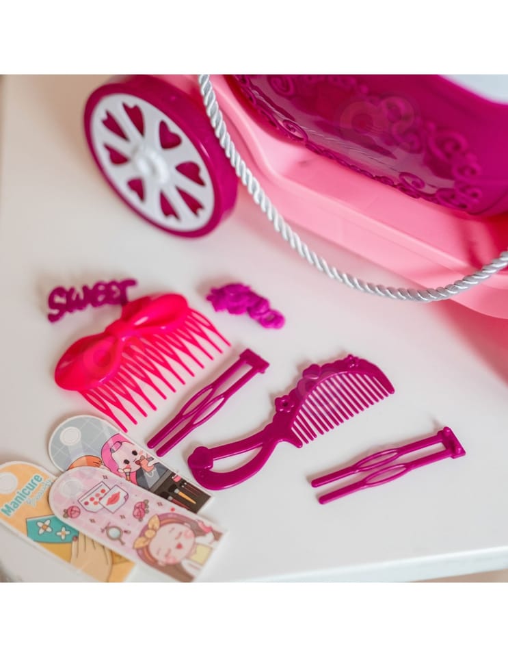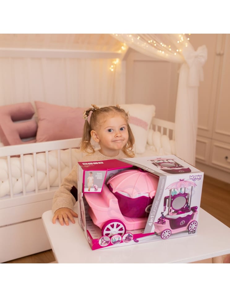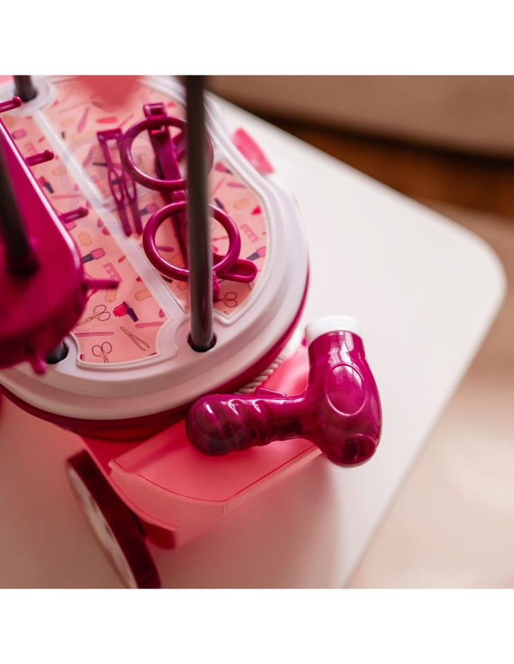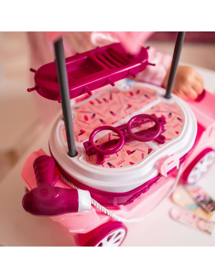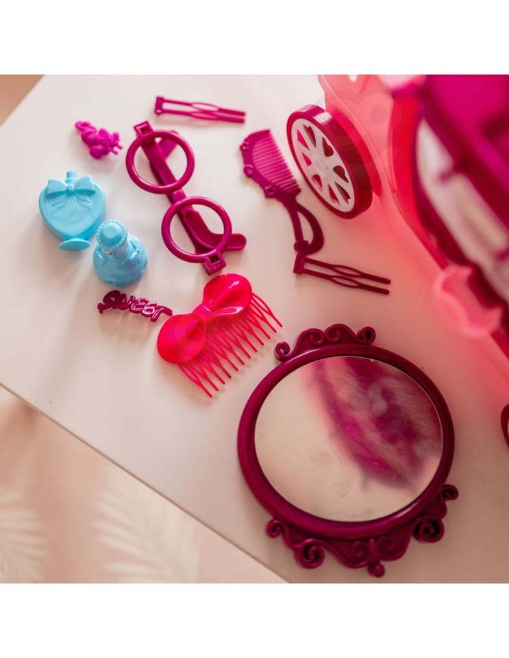Salon piękności - toaletka w Walizce 4w1 od marki WOOPIE to nieograniczona okazja do zabawy w małą makijażystkę. Dziecko dzięki temu zestawowi może uruchomić swój własne przenośne studio makijażu i tworzyć w nim niesamowite fryzury oraz makijaże. W tej zabawce główną rolę odgrywa wyobraźnia i kreatywność - dziecko może dowolnie aranżować swój salon i obsługiwać klientów. Elementy składające się na zestaw są solidne i wykonane z dobrej jakości materiałów, co gwarantuje długotrwałą i bezpieczną zabawę. Studio może być inspiracją dla dzieci, by naśladować dorosłych i zdobywać umiejętności interpersonalne. Zabawka pomaga w rozwijaniu małej motoryki oraz wyobraźni i kreatywności dziecka.