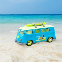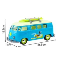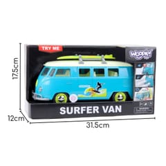 Klasyczny Bus Surfing Van od marki Woopie to gratka dla każdego miłośnika motoryzacji i klimatu retro. Ten niebiesko-biały model mikrobusa z deską surfingową na dachu wygląda niezwykle realistycznie i przeniesie Cię prosto na słoneczną plażę. Pojazd wyposażony jest w efekty świetlne i dźwiękowe, które uruchamiają się po naciśnięciu, zapewniając dodatkowe wrażenia podczas zabawy. Realizmu dodają otwierane boczne drzwi , które umożliwiają zajrzenie do środka pojazdu. Wykonany z dbałością o detale, będzie idealny zarówno do zabawy, jak i jako element kolekcji.