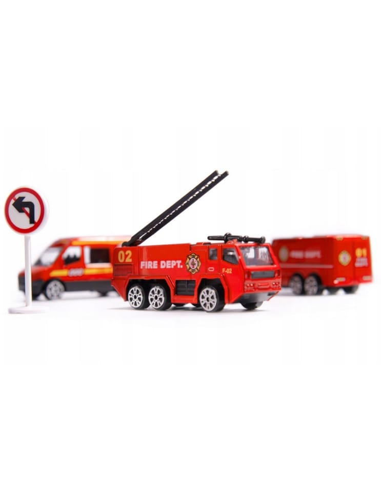- - 3 czerwone auta strażackie: wóz z drabiną, opancerzony transporter, mały miejski wóz strażacki