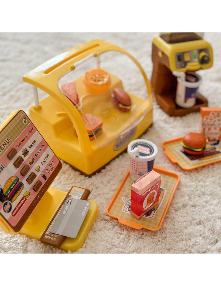 - - Kasa z ekranem menu – dziecko może przyjmować zamówienia jak w prawdziwym fast foodzie (po naciśnięciu przycisku na ekranie zestaw odtwarza nazwę produktu z obrazka w języku angielskim)