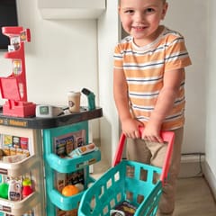 Supermarket z wózkiem sklepowym zawierający 47 akcesoriów od niezawodnej marki Woopie to idealna propozycja dla dzieci powyżej 3 roku życia. Dzieci uwielbiają naśladować swoich rodziców dlatego to doskonały zestaw dla Twojego dziecka. Odgrywanie ról niezwykle rozwija wyobraźnie i kreatywność malucha. Sklepik zawiera w zestawie wszystkie niezbędne elementy do wyposażenia stanowiska pracy małego sprzedawcy w tym: kasę z wagą, skanerem i czytnikiem kart płatniczych. Dołączony wózek na zakupy umożliwia zabawę z przyjaciółmi nie ważne gdzie i kiedy, a dodatkowo dziecko już zawszę będzie wiedziało jak zachować się w supermarkecie!