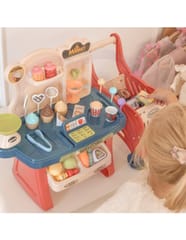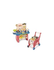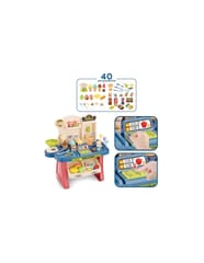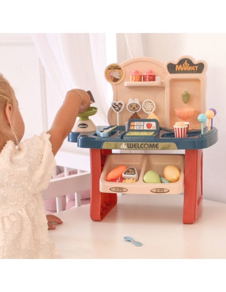 Sklep Supermarket z wózkiem od renomowanej marki WOOPIE to doskonały zestaw edukacyjny, który pozwala dzieciom na naśladowanie dorosłych i odgrywanie scenek z codziennego życia. Bogato wyposażone stoisko handlowe oferuje mnóstwo możliwości zabawy w sprzedawcę i klienta. Dziecko znajdzie tu wszystko, czego potrzebuje do prowadzenia własnego biznesu, w tym kasę, wagę, skaner oraz szeroki wybór produktów spożywczych. Zestaw składa się z aż 40 elementów, co gwarantuje długie godziny angażującej zabawy. W komplecie znajduje się również wygodny, jeździkowy wózek na zakupy, który pozwala na komfortowe przenoszenie artykułów przez małych klientów. Zabawka wyróżnia się żywą kolorystyką oraz precyzyjnym wykonaniem z dbałością o każdy detal, stanowiąc fantastyczne centrum zabawy w każdym dziecięcym pokoju.