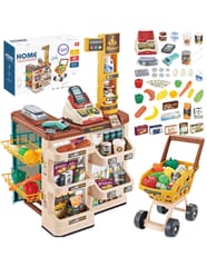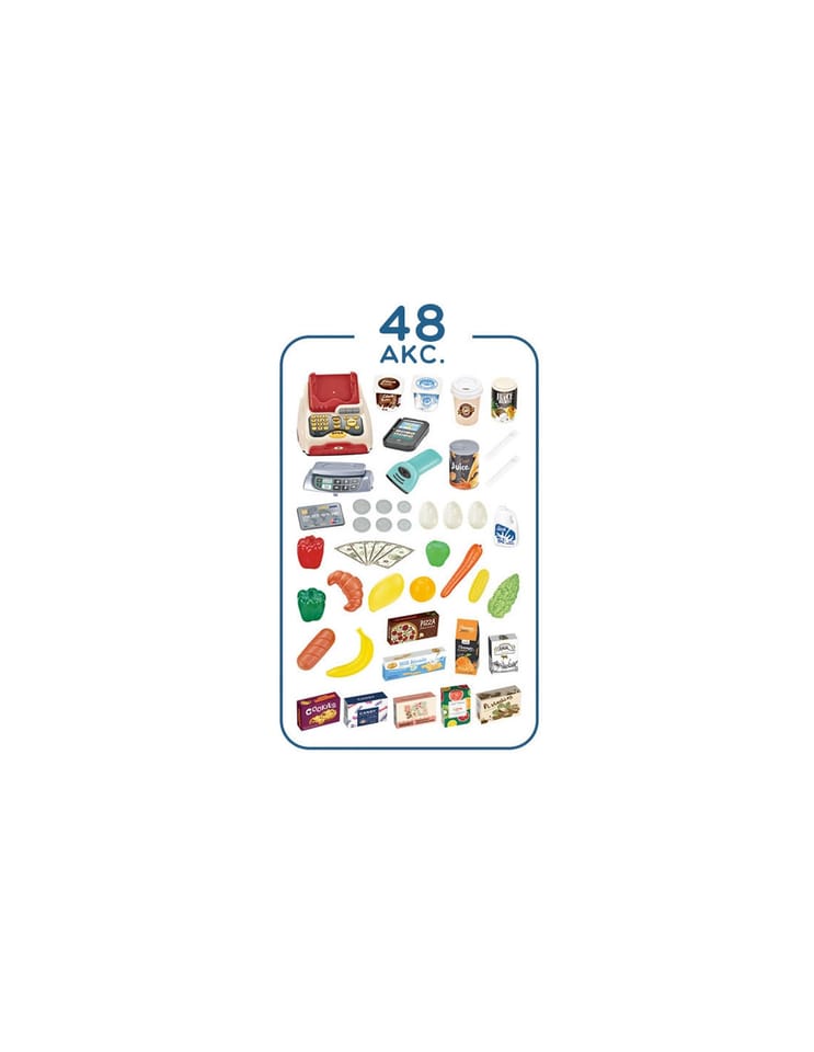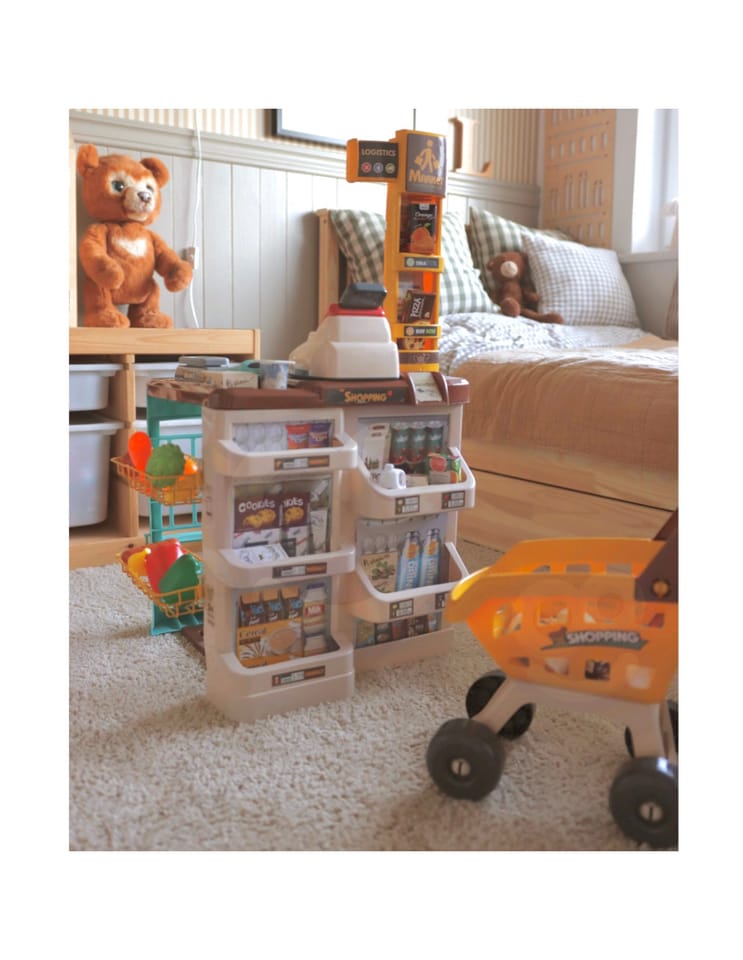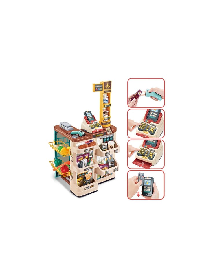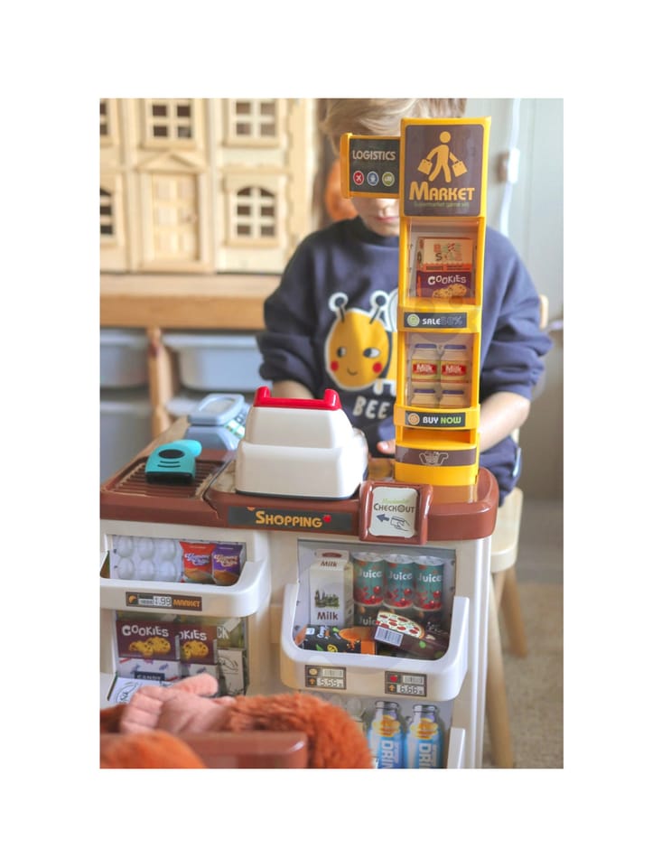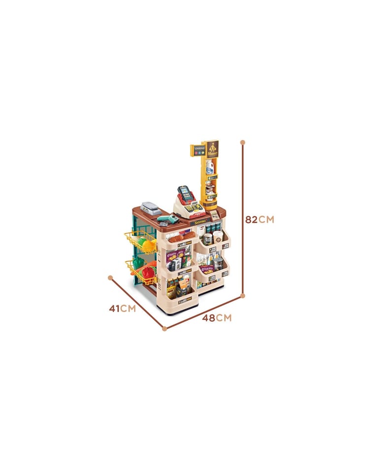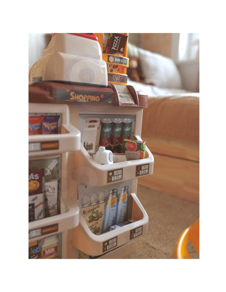 Kompleksowo wyposażony supermarket z wózkiem na zakupy to doskonały zestaw do kreatywnej zabawy w sklep. Dzieci uwielbiają naśladować codzienne czynności dorosłych, a ten wieloelementowy komplet pozwala na stworzenie realistycznego stoiska handlowego w domowym zaciszu. Stanowisko zostało zaprojektowane z dbałością o szczegóły i pomieści cały niezbędny asortyment, dostarczając mnóstwa radości. Wielofunkcyjny zestaw składa się z aż 48 elementów. Znajdziemy w nim przestronne półki na produkty, zabawkową wagę, otwieraną kasę sklepową oraz precyzyjnie odwzorowany skaner produktów. Dołączony do kompletu wózek na kółkach pozwala na wygodne robienie zakupów przez małych klientów. To idealna zabawka, która świetnie sprawdzi się do samodzielnej zabawy, jak i do angażowania rodzeństwa czy rodziców.