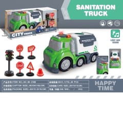 Śmieciarka Sanitation Truck z serii CITY TRUCK to idealna zabawka dla każdego małego fana motoryzacji i miejskich pojazdów specjalnych. W skład zestawu wchodzi realistycznie odwzorowana śmieciarka, wykonana z trwałego tworzywa sztucznego, wyposażona w efekty świetlne i dźwiękowe, które aktywują się po naciśnięciu przycisku na dachu pojazdu. Zabawka posiada akcesoria takie jak sygnalizator świetlny, znaki drogowe i pachołek.
