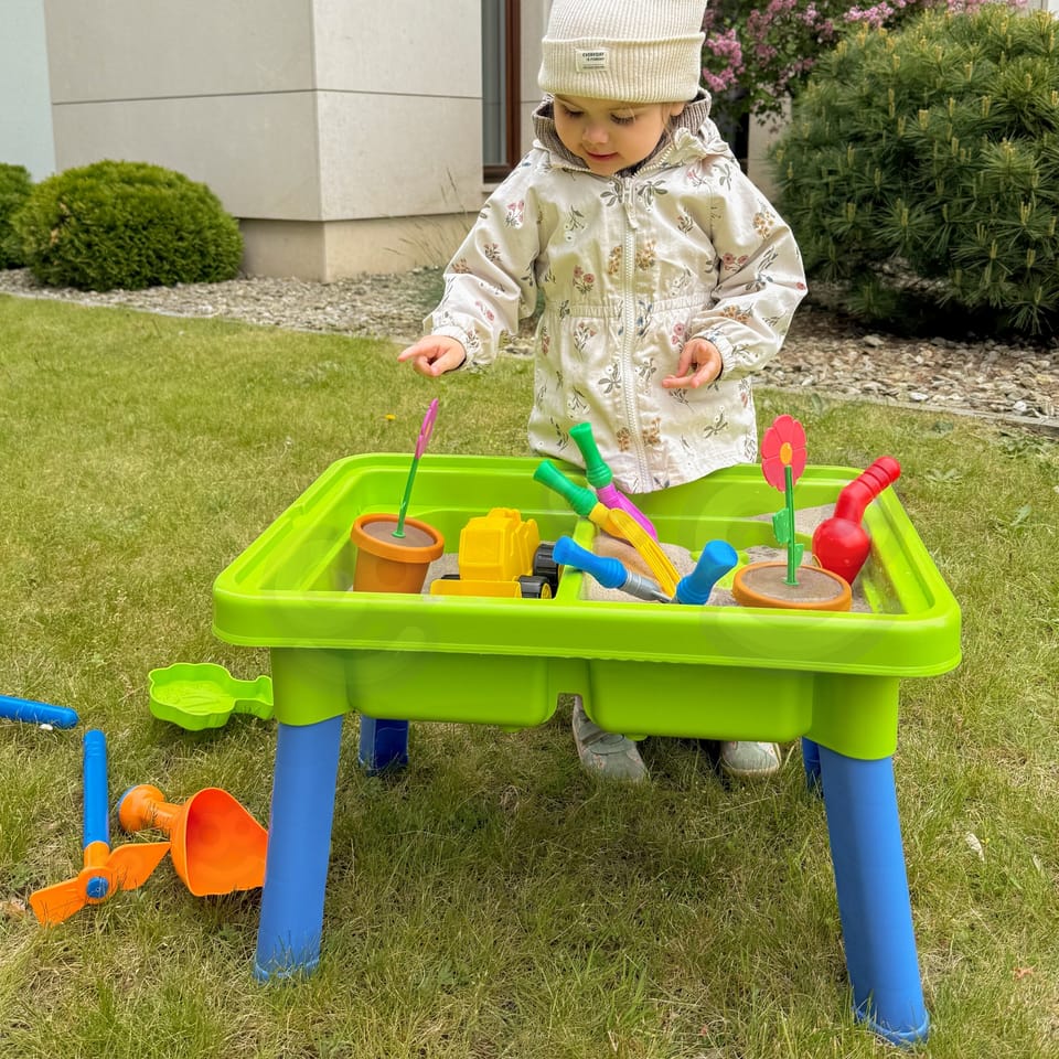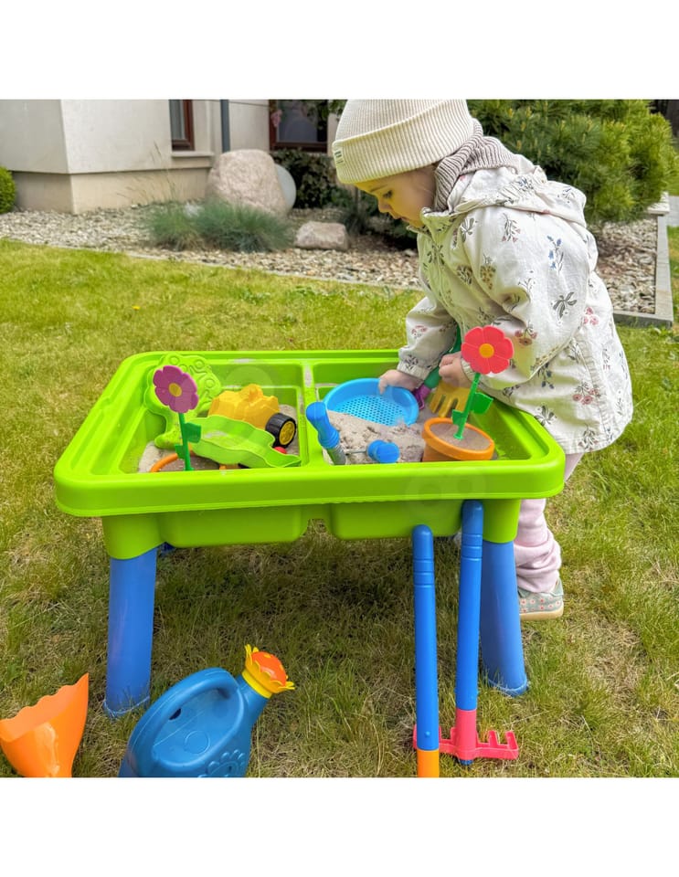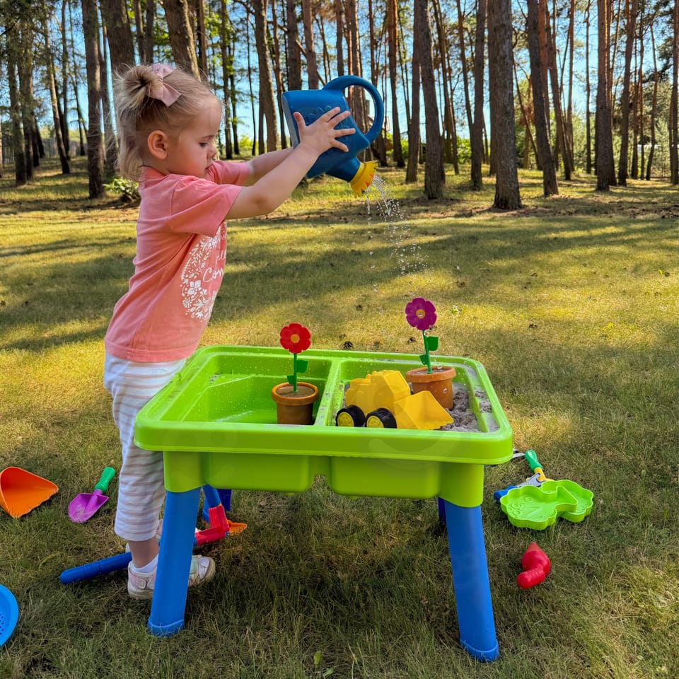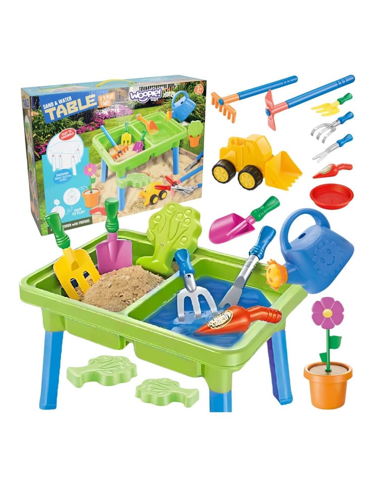 Stół Wodny 2w1 Piaskownica od marki WOOPIE to doskonała zabawka, która zapewni dzieciom niezliczone godziny zabawy z wodą i piaskiem. W skład zestawu wchodzi aż 13 różnorodnych akcesoriów, takich jak: foremka, konewka, koparka oraz dwie łopatki. Stolik posiada dwa wgłębienia – jedno można wypełnić wodą, a drugie piaskiem, co pozwala na kreatywną zabawę w dowolnym miejscu. Zestaw idealnie sprawdza się zarówno w domu, jak i na plaży czy w piaskownicy. Ten wszechstronny zestaw umożliwia dzieciom tworzenie nieograniczonych scenariuszy zabaw, pobudzając ich wyobraźnię i rozwijając umiejętności manualne. Idealny do twórczej zabawy zarówno wewnątrz, jak i na świeżym powietrzu!