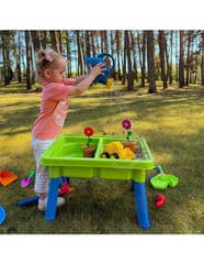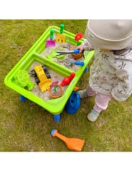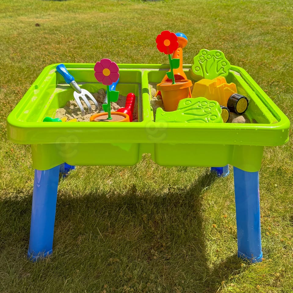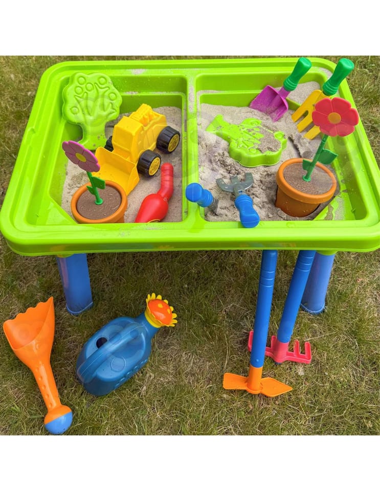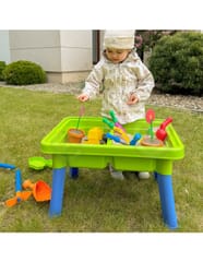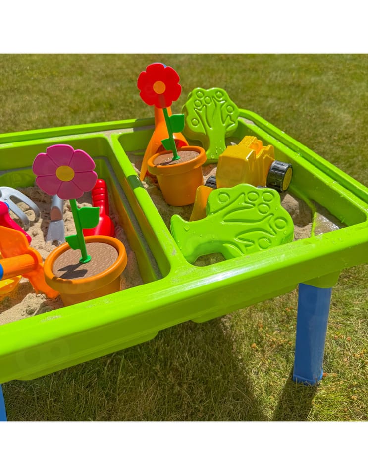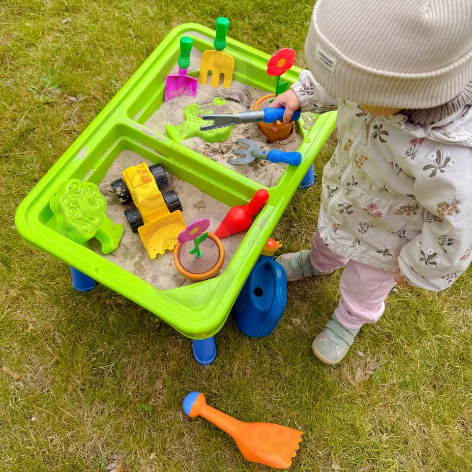 Stół Wodny 2w1 Piaskownica od marki WOOPIE to doskonała zabawka, która zapewni dzieciom niezliczone godziny zabawy z wodą i piaskiem. W skład zestawu wchodzi aż 13 różnorodnych akcesoriów, takich jak: foremka, konewka, koparka oraz dwie łopatki. Stolik posiada dwa wgłębienia – jedno można wypełnić wodą, a drugie piaskiem, co pozwala na kreatywną zabawę w dowolnym miejscu. Zestaw idealnie sprawdza się zarówno w domu, jak i na plaży czy w piaskownicy. Ten wszechstronny zestaw umożliwia dzieciom tworzenie nieograniczonych scenariuszy zabaw, pobudzając ich wyobraźnię i rozwijając umiejętności manualne. Idealny do twórczej zabawy zarówno wewnątrz, jak i na świeżym powietrzu!