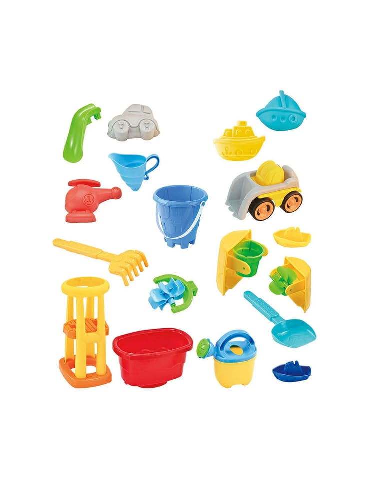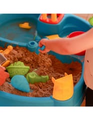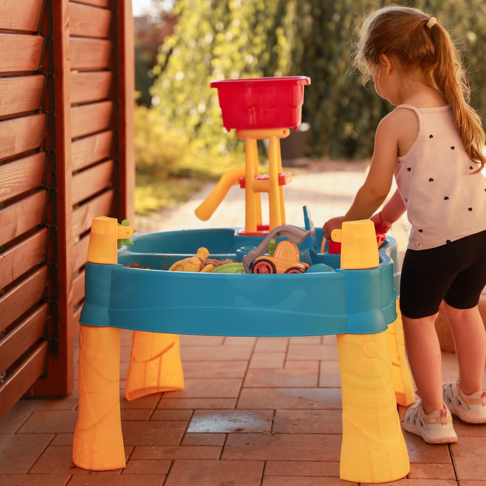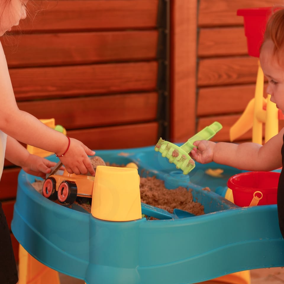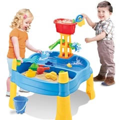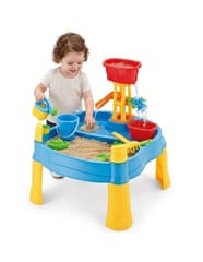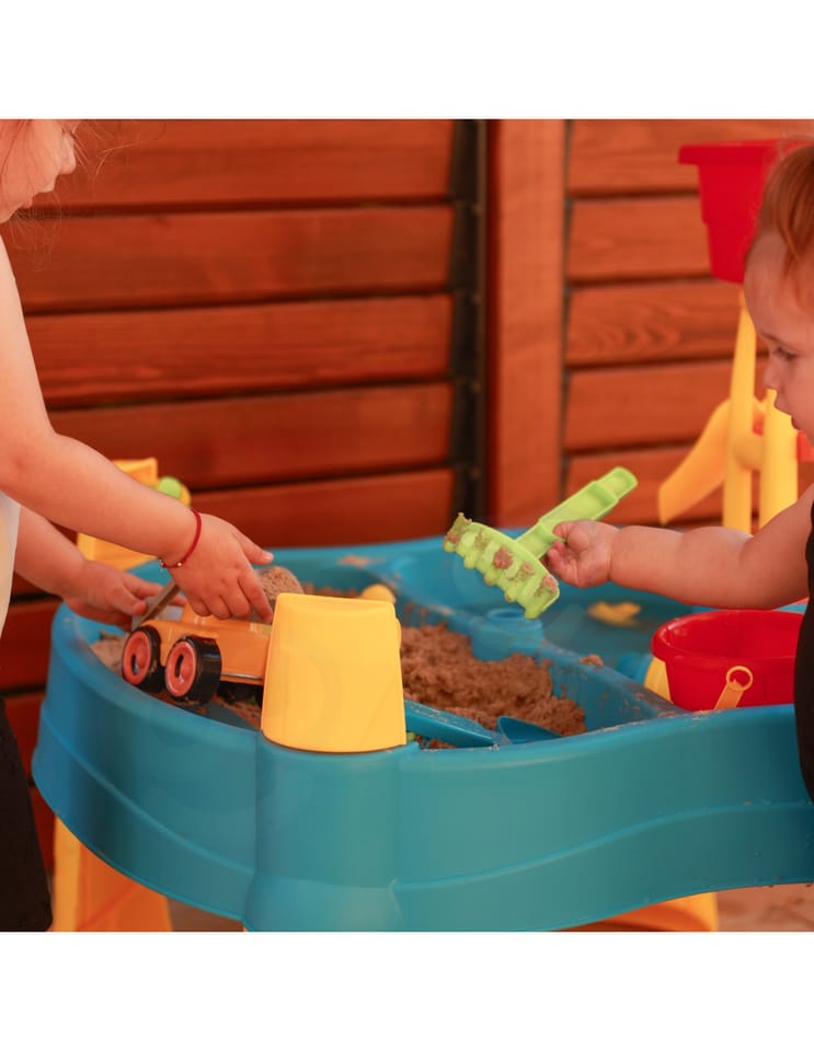 Stół Wodny 2w1 Piaskownica od marki WOOPIE jest idealną zabawka do zabawy z wodą i piaskiem. Zestaw zawiera 14 akcesoriów: 4 foremki, konewkę, młynek, łopatkę, grabki, samochodzik i 2 statki. Stolik posiada 2 wgłębienia, które jedno wypełnij wodą, a drugie piaskiem, co pozwala na zabawę wszędzie. Dziecko może wlewać wodę do młynka i patrzeć jak woda spływa. Zestaw jest przeznaczony do zabawy w domu, jak i na zewnątrz. Idealne do zabawy w domu i na plaży lub w piaskownicy.