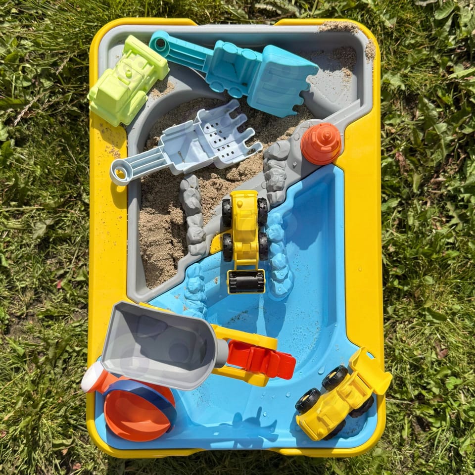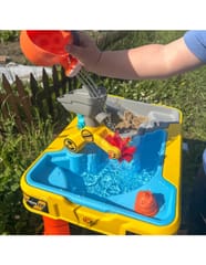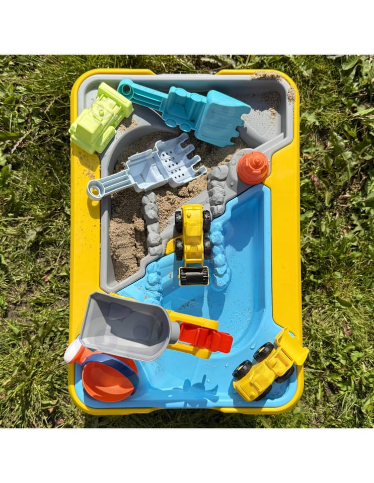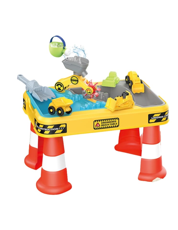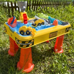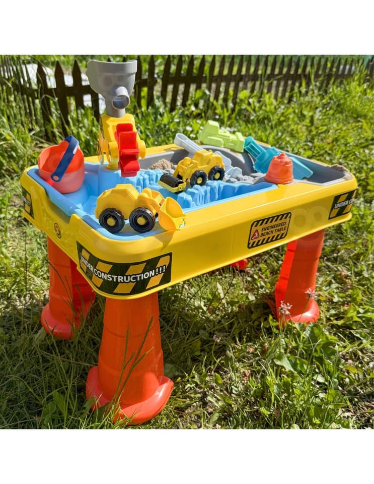 Zanurz się w świat kreatywnej zabawy z dużym stolikiem wodnym i piaskowym w motywie budowy! Ten kolorowy i solidnie wykonany zestaw łączy funkcje stolika, piaskownicy oraz basenu wodnego, gwarantując dzieciom długie godziny rozwijającej i angażującej zabawy. Idealny do użytku w ogrodzie, na tarasie, plaży lub w domu.