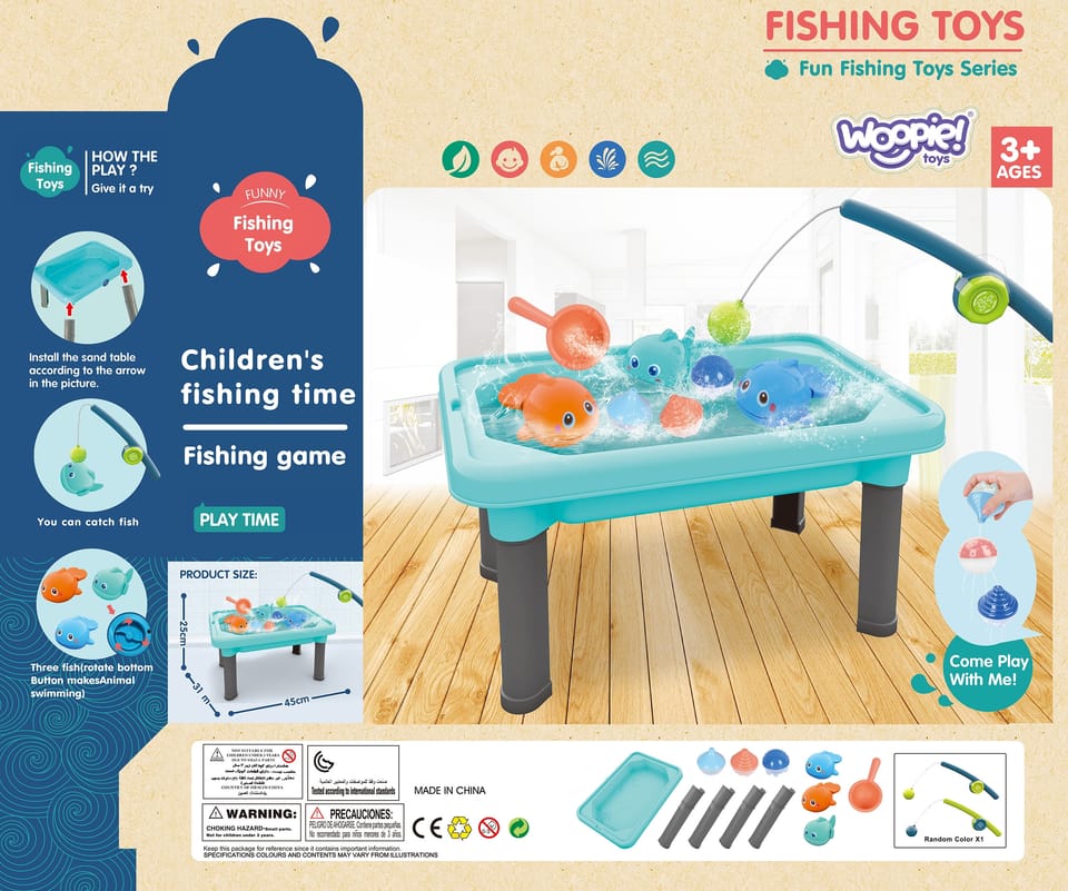 Stolik Wodny 3w1 Gra Łowienie Rybek Piaskownica od renomowanej marki WOOPIE to idealny produkt dla naszych najmłodszych pociech. Napełnij zbiornik wodą i pozwól dzieciom cieszyć się ze świetnej zabawy w wodzie. Stolik może być wykorzystany również jako piaskownica. Zestaw zawiera 6 elementów, w tym stolik wodny, wędkę, łyżkę do wody, 3 piłeczki przelewowe i 3 rybki. Rybki posiadają magnesy) oraz dodatkowo można je nakręcić, aby pływały po wodzie. Zestaw jest świetnym produktem do zabawy w domu, jak i na zewnątrz. Twoje dziecko będzie zachwycone w zabawę w łowienie rybek.
