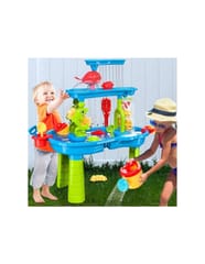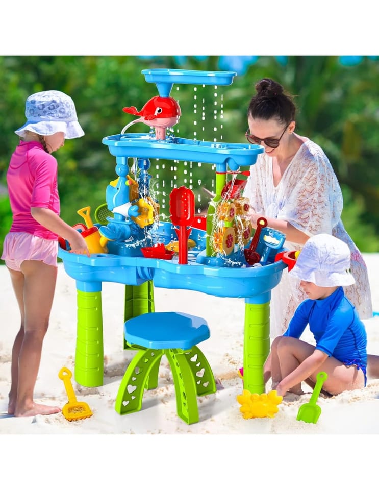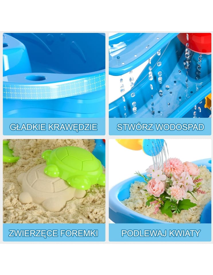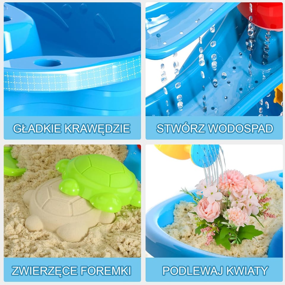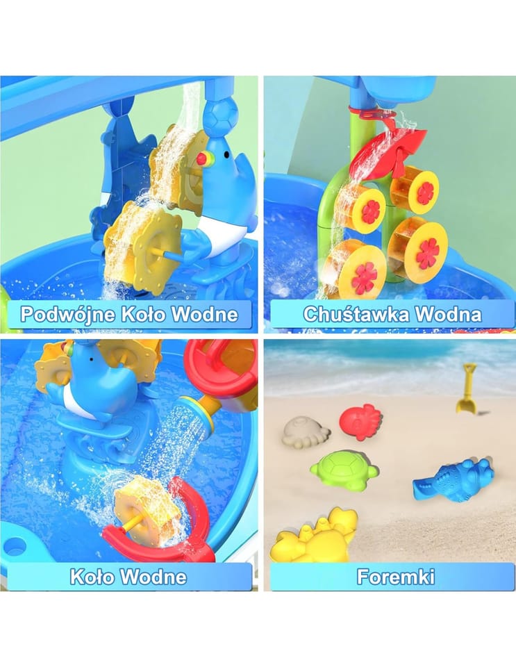 Niezwykły stolik wodny od marki WOOPIE to idealny sposób na wspaniałą zabawę przez cały rok, niezależnie od pogody. To nie tylko fantastyczna rozrywka w upalne dni, ale także świetny sposób na pokonanie nudy, gdy zrobi się chłodniej. Ten wyjątkowy stolik wyróżnia się zaawansowanym, 3-poziomowym systemem wodnym, który z pewnością zachwyci każde dziecko! Mali odkrywcy mogą za pomocą konewki nalewać wodę do górnej komory, a następnie obserwować, jak wodospad spływa do dolnego zbiornika, wprawiając w ruch koło wodne. Dodatkowo, dzięki dołączonym akcesoriom, stolik ten może być również wykorzystywany do zabawy piaskiem, zarówno zwykłym, jak i kinetycznym, co czyni go wszechstronną zabawką na każdą okazję.
