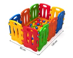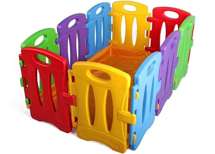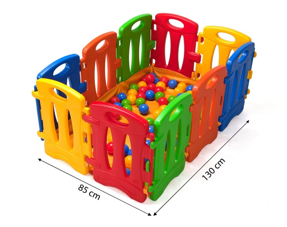 - W zestawie znajduje się 10 szt. kolorowych paneli oraz dno z materiału. - Bardzo stabilny, każdy panel posiada dwie nóżki z podkładkami antypoślizgowymi. - Zestawy można ze sobą dowolnie łączyć, aby powstał większy kojec, lub kącik zabaw. - Solidny, odporny na uderzenia plastik. - Płotek można zdemontować i złożyć w torbę, która jest jednocześnie podłogą kojca w celu przewiezienia lub przechowania.