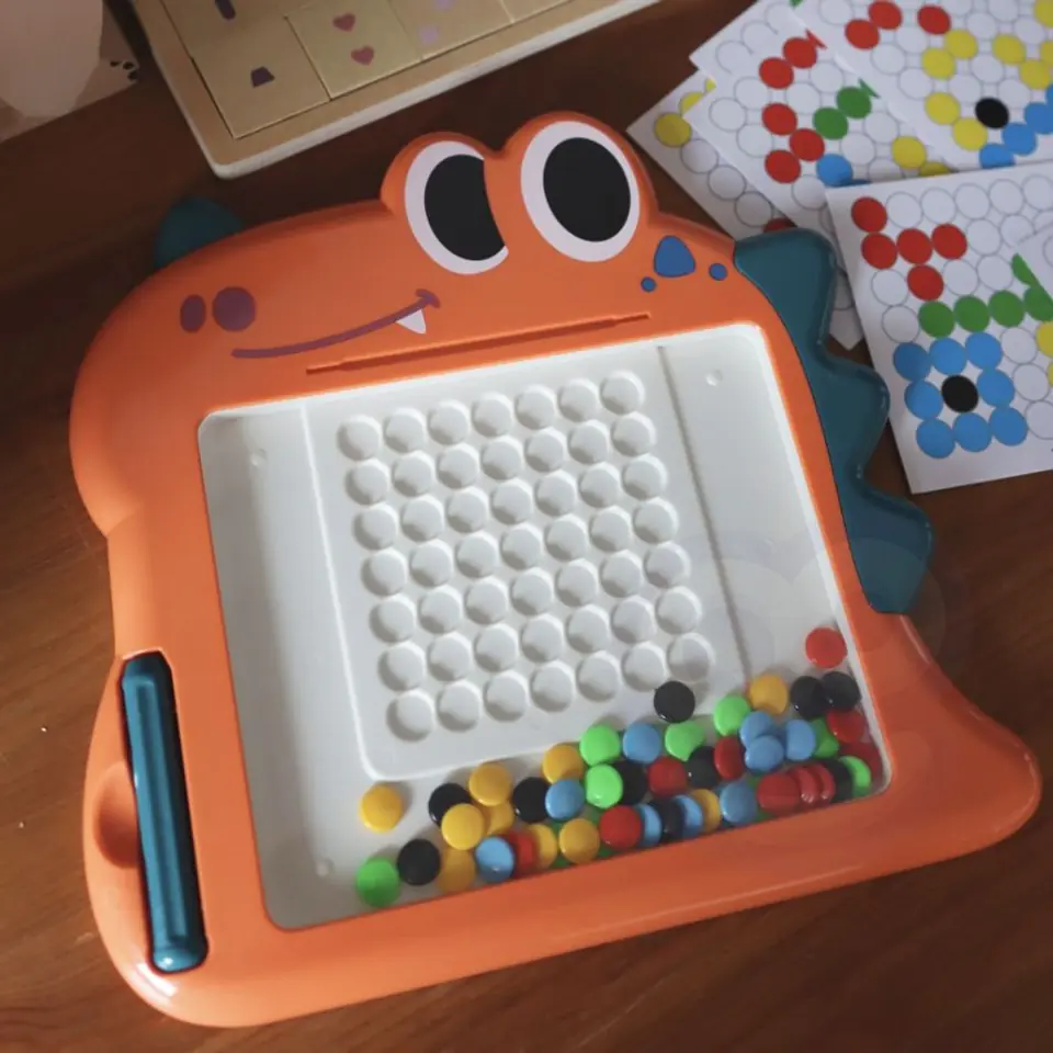Charakterystyka produktu:- zabawka od 3 roku życia- magnetyczne guziki w różnych kolorach- prosta w obsłudze - nie wymaga dodatkowych narzędzi- twórz wzory, jakie tylko zapragniesz!- stymuluje kreatywność, wyobraźnię oraz rozwija zdolności manualne
