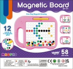 Tablica Magnetyczna MagPad od marki WOOPIE otwiera przed Twoim dzieckiem drzwi do świata kreatywności i edukacji. Dzięki tej wyjątkowej tablicy Twoje dziecko ma okazję tworzyć niepowtarzalne wzory i mozaiki. W skład zestawu, oprócz samej tablicy, wchodzi magnetyczny pisak oraz 84 magnetycznych guzików do tworzenia. Ograniczeniem jest jedynie wyobraźnia i kreatywność - maluch może swobodnie układać wzory według własnych pomysłów. Guziki są mocne i trwałe, a układanie jest intuicyjne i proste. Ten zestaw to nie tylko zabawa, ale też doskonałe narzędzie do nauki i rozwijania zdolności manualnych, koncentracji oraz wyobraźni.