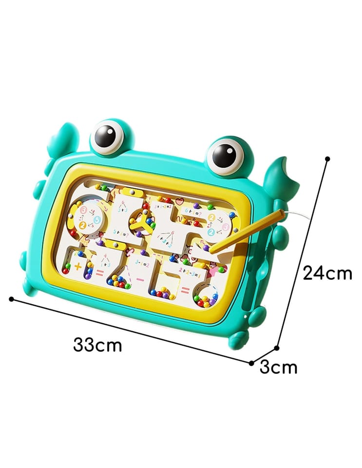 Odkryj fascynujący świat nauki przez zabawę z naszą magnetyczną tablicą edukacyjną w kształcie kraba od marki Woopie! Tablica została zaprojektowana z myślą o wczesnej edukacji i wspiera rozwój sensoryczny, manualny i poznawczy najmłodszych poprzez angażujące aktywności, takie jak sortowanie kulek przy pomocy magnetycznego rysika, nawigacja po labiryncie i trzymanie rysika w prawidłowy sposób. Poprzez układanie kuleczek w poszczególne komory dziecko tworzy proste równania matematyczne, bawiąc się i ucząc jednocześnie. Do ćwiczeń matematycznych można wykorzystać dołączone do zestawu karty z działaniami. Wykonana z wysokiej jakości, bezpiecznych materiałów, gwarantuje trwałość i komfort użytkowania przez wiele godzin aktywnej zabawy. Jaskrawy turkusowy kolor tablicy oraz jej kształt w formie kraba zachęcają malucha do zabawy. Tablica nie wymaga baterii, a dzięki kompaktowym rozmiarom idealnie sprawdzi się zarówno w domu, jak i w podróży.