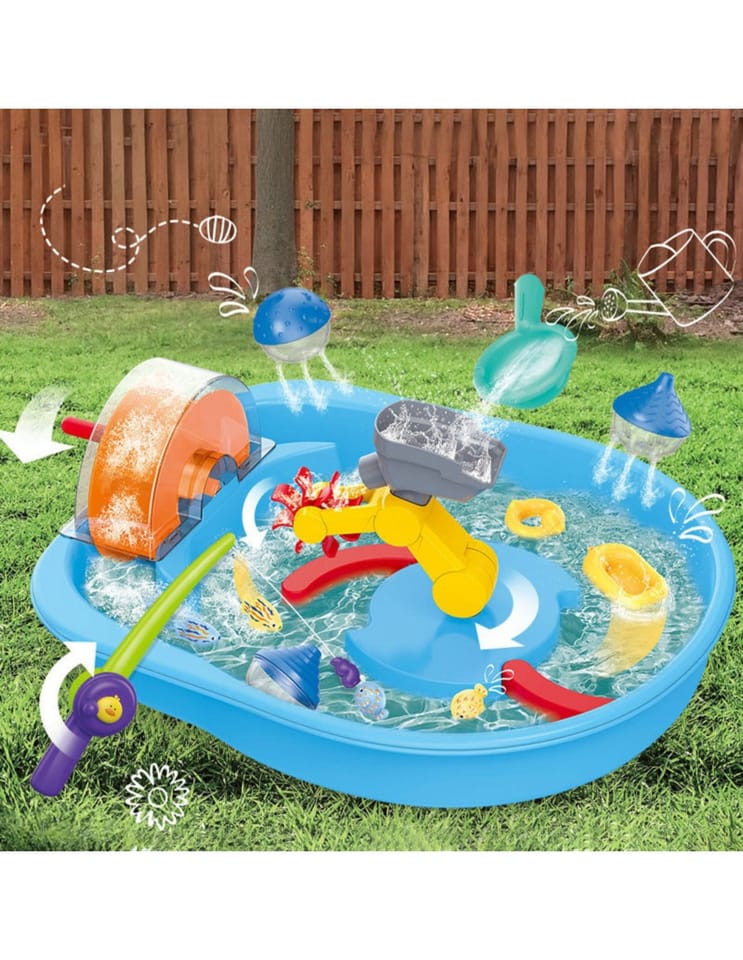 Zabawa wodą jeszcze nigdy nie była tak ekscytująca! Kolorowy zestaw wodny z kołem wodnym to doskonały sposób na aktywną i kreatywną zabawę w domu lub na świeżym powietrzu. Idealny dla małych odkrywców, którzy uwielbiają wodne eksperymenty i łowienie rybek.
