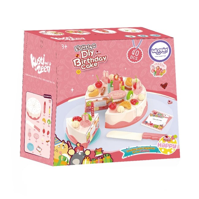 Tort urodzinowy od renomowanej marki Woopie to idealna propozycja na spotkania z przyjaciółmi. Zestaw będzie idealnym atrybutem każdej małej gospodyni czy każdego małego gospodarza do zorganizowania niezapomnianego przyjęcia. W zestawie znajdziemy pięknie udekorowany tort, który możemy pokroić na 6 kawałków i poczęstować swoich gości. Dziecko może dekorować tort według własnych pomysłów dzięki dołączonym do zestawu świeczekom, ozdobom w kształcie króliczka i owocom. Na środku tortu znajduje się świeczka, która po naciśnięciu przycisku zapala się. Z takim zestawem zabawie nie będzie końca!