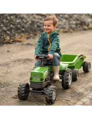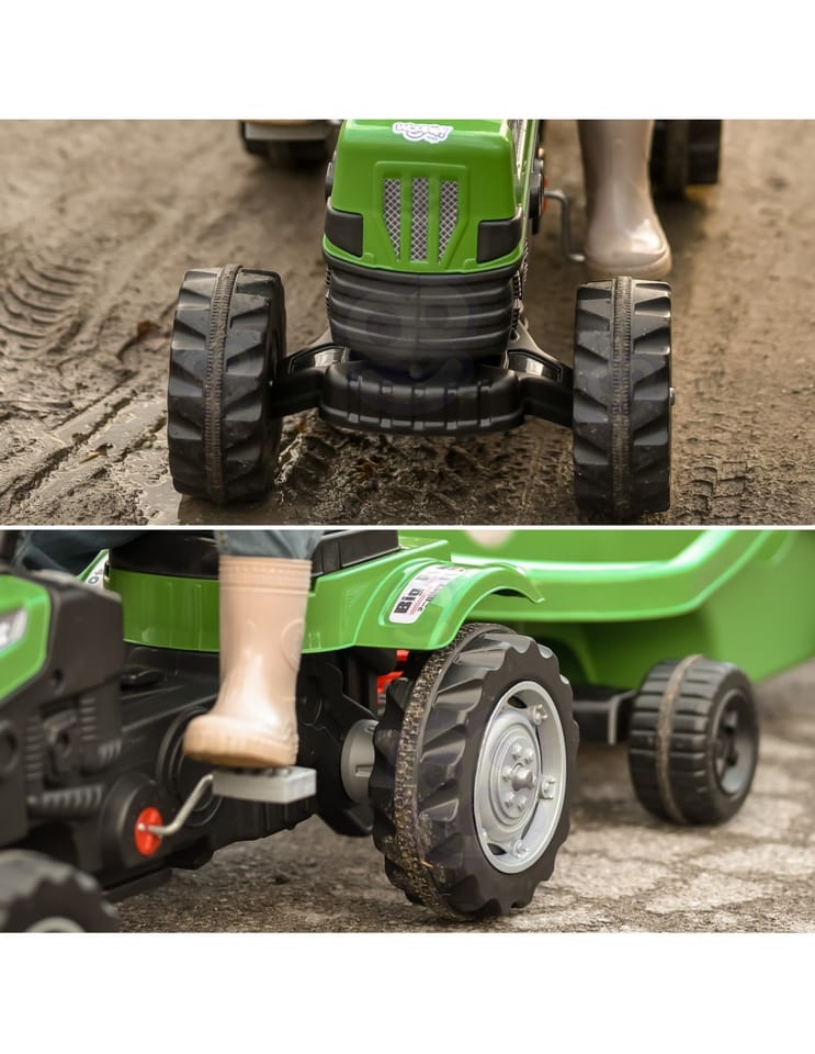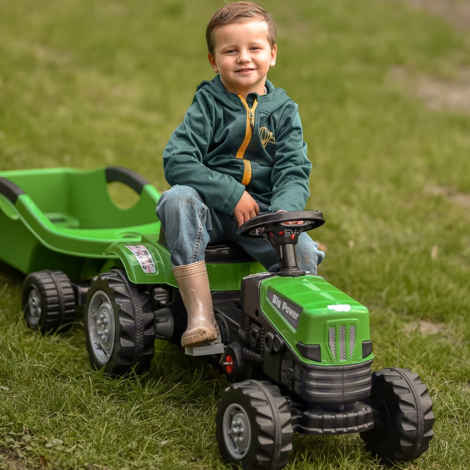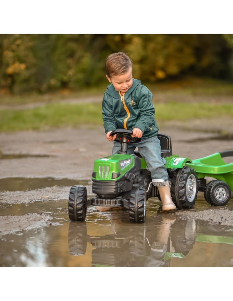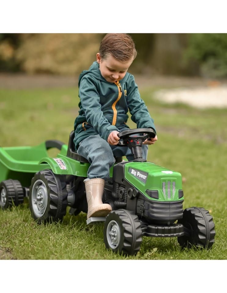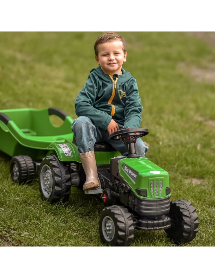 Zielony Traktor Na Pedały Big Power Z Przyczepą Pozwoli na wejście na wyższy poziom zabawy w małego rolnika. Wykonany z wytrzymałego tworzywa sztucznego i wyposażony w praktyczną przyczepę, z pewnością stanie się ulubioną zabawką każdego dziecka. Ten pięknie zaprojektowany pojazd posiada regulowane siedzisko zapewniając wygodę jazdy dla każdego malucha.