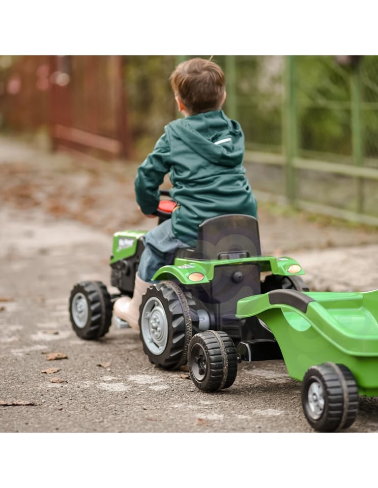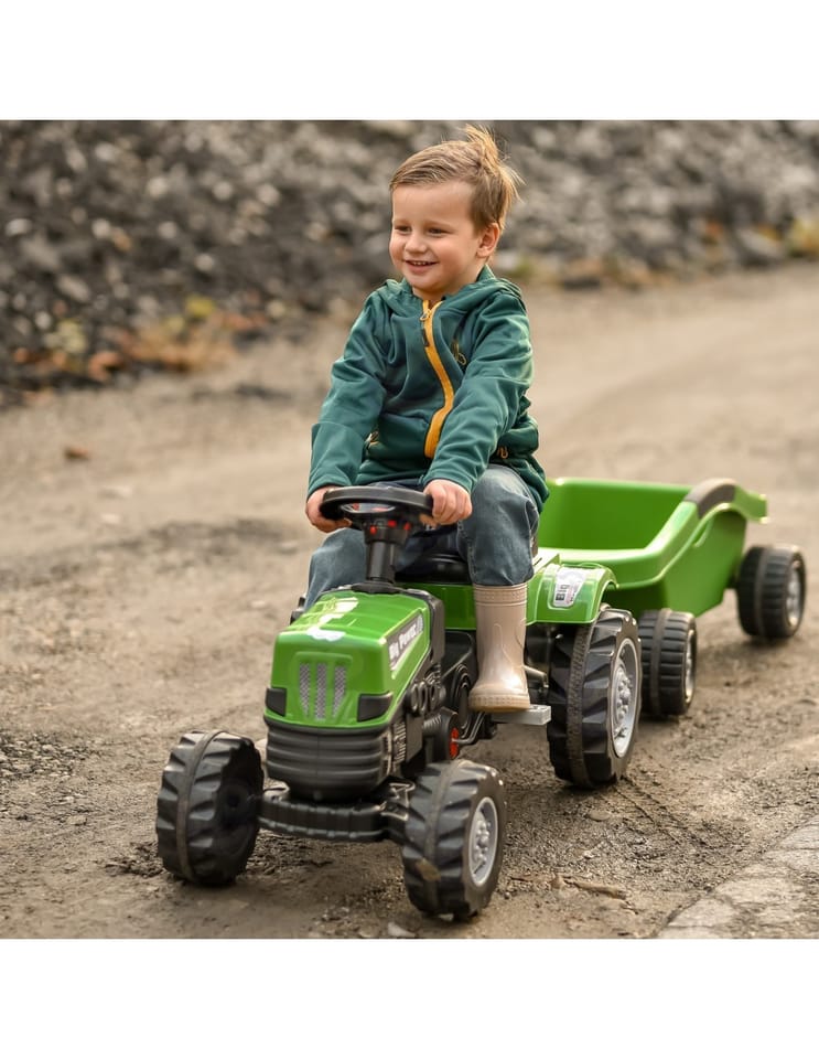 - - Wyposażony w przyczepę do przewożenia zabawek i innych przedmiotów
