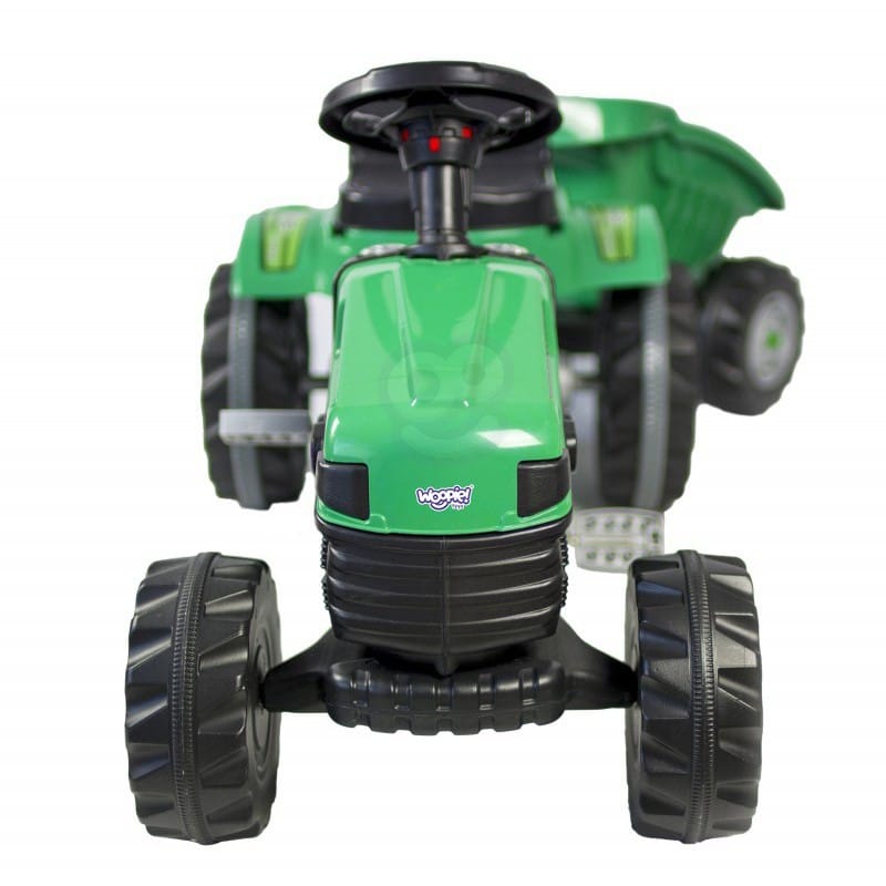 - wygodne siedzenie, które posiada 6-stopniową regulację (przód-tył)- kierownica z klaksonem- napęd łańcuchowy na tylne koła zapewnia komfort i płynność podczas jazdy- przednia oś skrętna- hak holowniczy, który umożliwia doczepienie również innych rzeczy- odczepiana przyczepka/wywrotka