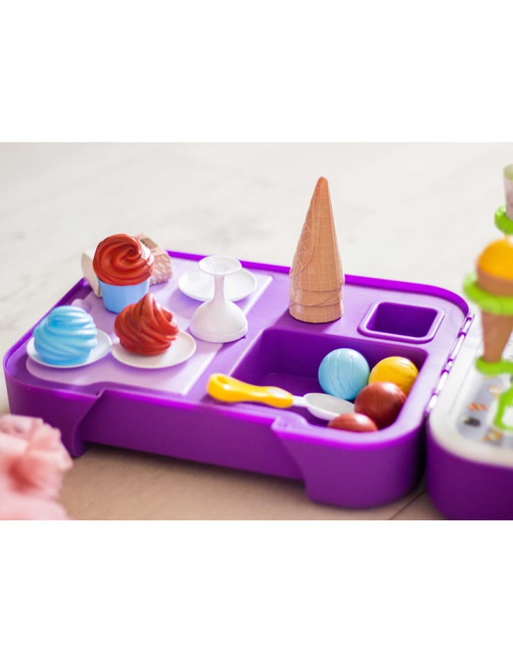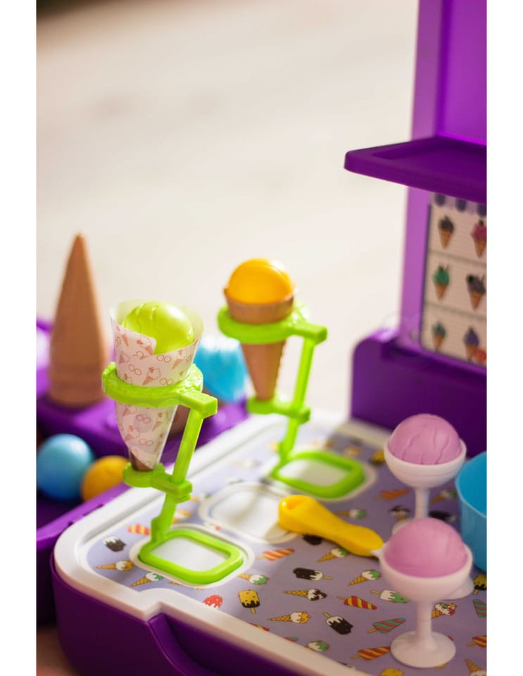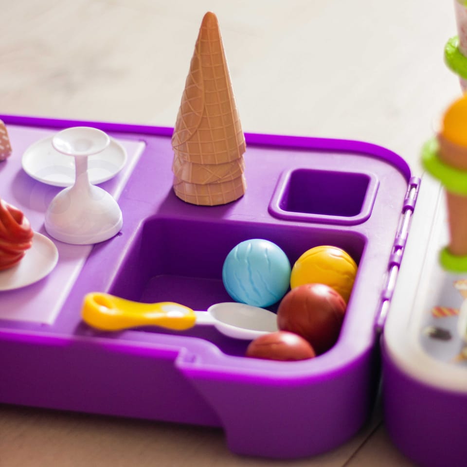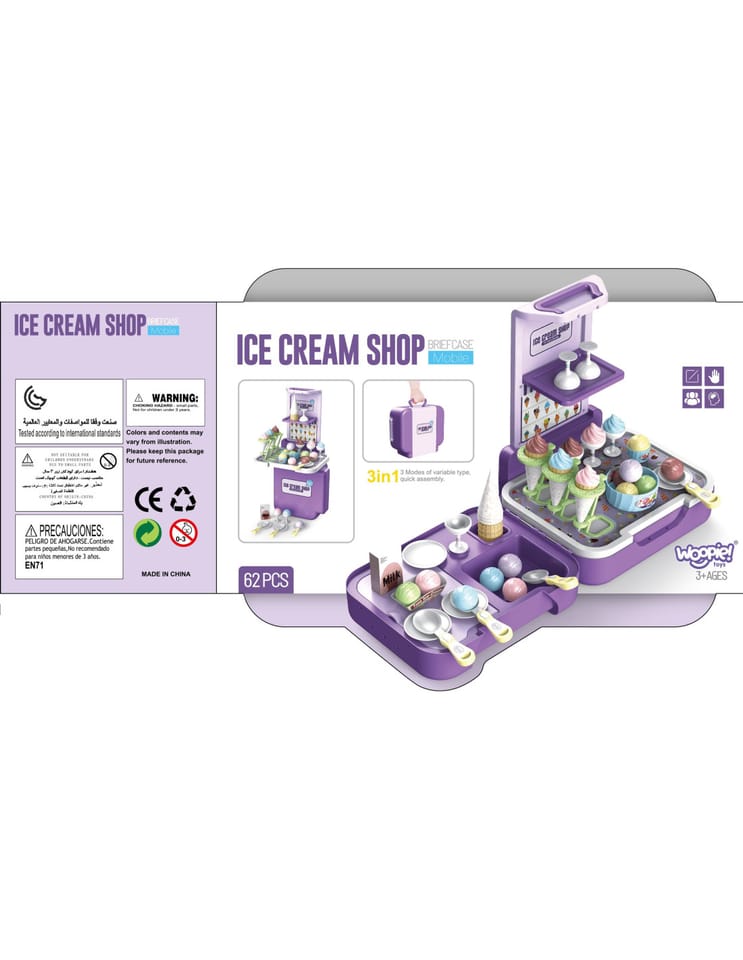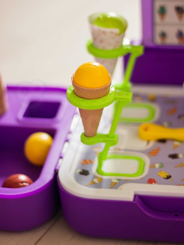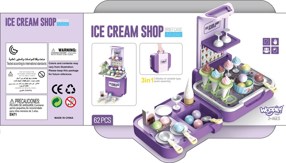 Stoisko z lodami zostało stworzone, by sprostać najbardziej wymagającym dzieciom. Sklep dla maluchów został zaprojektowany z myślą o sprzedaży lodów. Ty i Twoje dzieci pokochacie oryginalność projektu i sposób, w jaki pobudza wyobraźnię. Sklepik-lodziarnia dla dzieci nie tylko zachęca do zabawy, ale również służy jako zabawka edukacyjna dla dzieci. Zestaw świetnie się sprawdzi na przyjęcia urodzinowe, imprezy przy basenie, plac zabaw, w klasie lub przedszkolu. Ten super produkt świetnie się sprawdzi jako prezent dla Twoich pociech! Całość zapakowana w stylową walizkę.