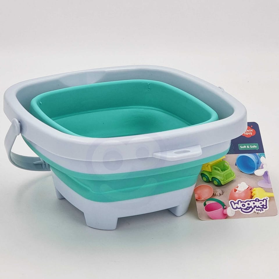 Silikonowe wiaderko od marki WOOPIE. Fantastyczne wiaderko do piaskownicy, na plażę lub do ogrodu, dzięki któremu dzieci miło spędzą czas na świeżym powietrzu. Wiaderko, dzięki składanej konstrukcji, zajmuje niewiele miejsca, jest łatwe w transporcie i wygodne do przechowywania. Zmieści się do dziecięcego plecaczka, do wózka czy plażowej torby.