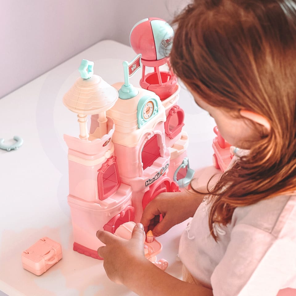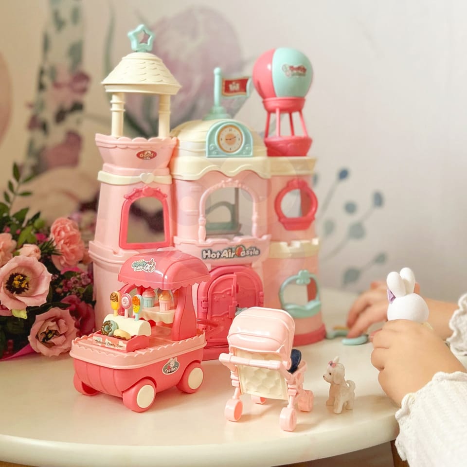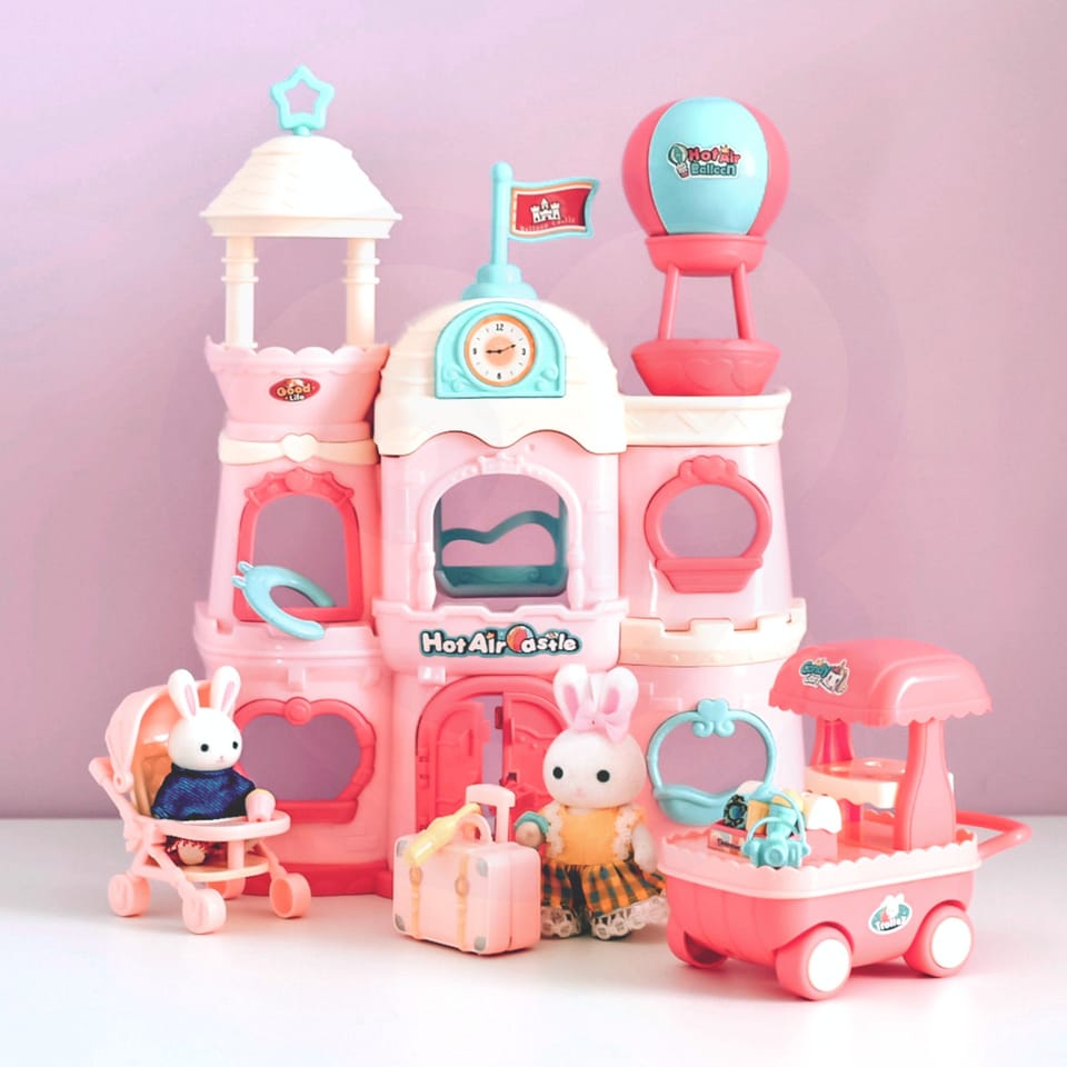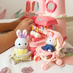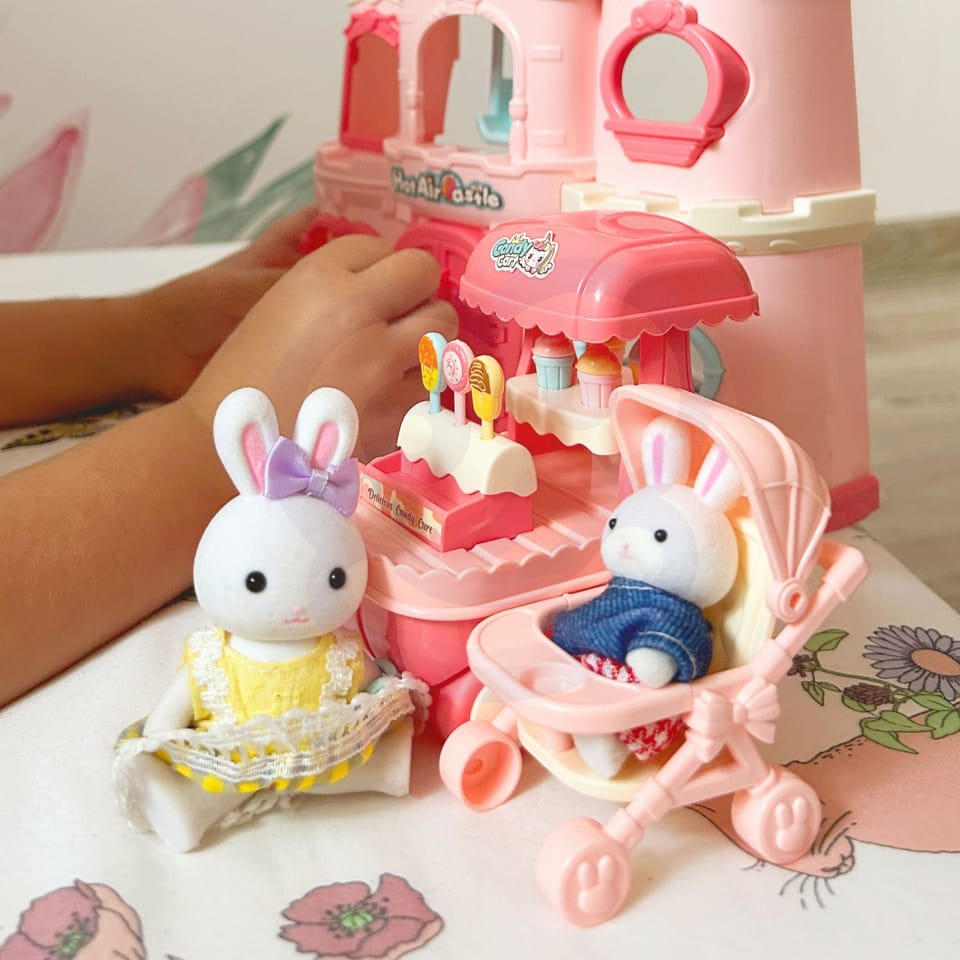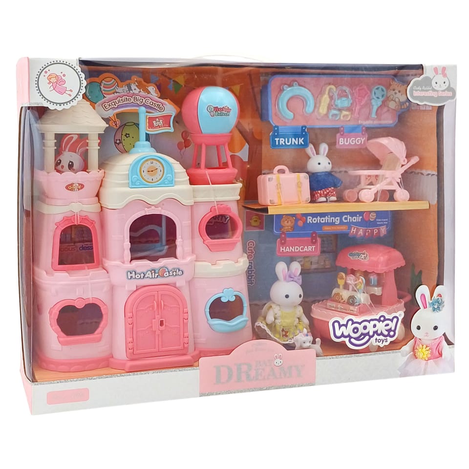 Willa Króliczków od marki WOOPIE to magiczne miejsce pełne kolorów i przygód dla każdego dziecka. Zamek otwierany na kluczyk kryje w sobie trzy poziomy pełne zabawy i przygód. W zestawie znajdują się mama i dziecko królika, a także ich piesek. Maluch króliczka ma do dyspozycji różowy uroczy wózeczek. Dodatkowo w zestawie znajduje się również walizka oraz wózek z lodami i innymi pysznościami, aby zapewnić pełną przyjemność podczas zabawy. Willa Króliczków zachwyca swoja kolorystyką i licznymi detalami, takimi jak malownicze okienka, huśtawka w środku oraz balon na dachu, zapewnią niezapomniane chwile rozrywki i kreatywnej zabawy. Liczne różnorodne dodatki pobudzą wyobraźnię i zapewnią godziny wciągającej zabawy.