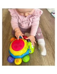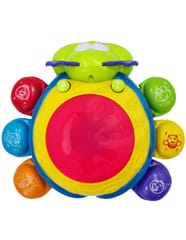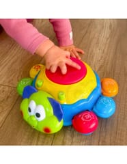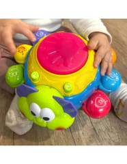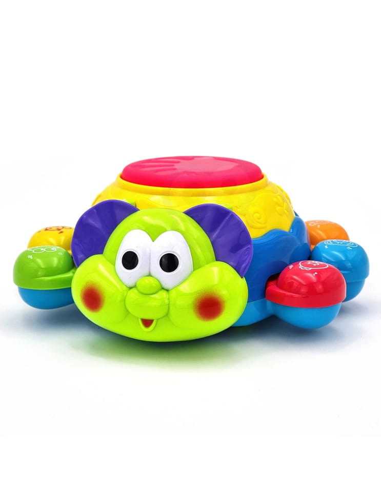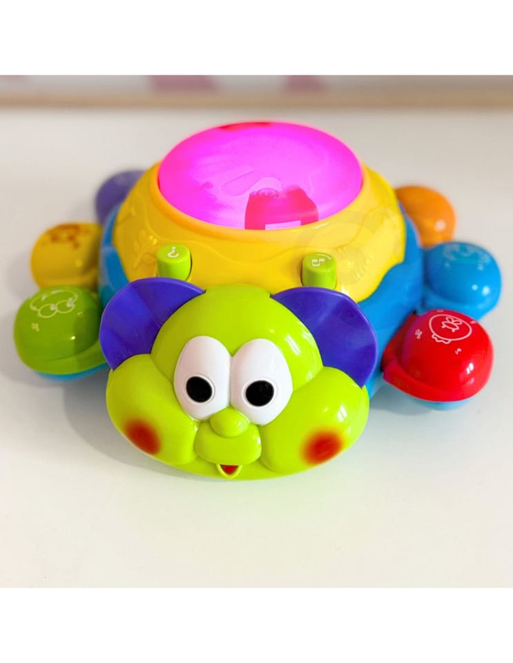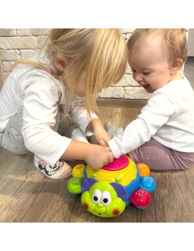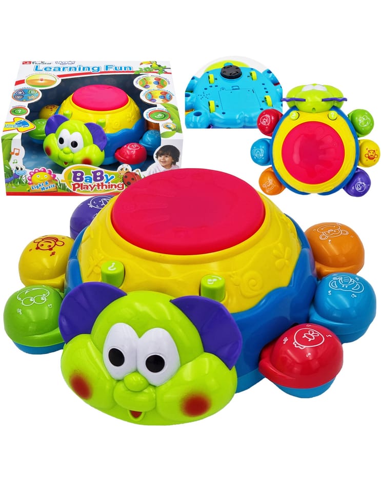 Zabawka interaktywna do raczkowania Biedronka od marki WOOPIE jest świetnym narzędziem do nauki pierwszych kroków. Zabawka jeździ i ucieka maluszkowi, by ten chciał zacząć się ruszać i ją złapać. Specjalny czujnik pozwoli Biedronce wyczuć przeszkodę i obrócić się w drugą stronę. Biedronka posiada liczne wartości edukacyjne. Każda nóżka posiada inny kolor i inne zwierzę do nauki z dzieckiem. Dodatkowo po naciśnięciu na nóżkę usłyszymy nazwę zwierzęcia i dźwięk z nim związany. Nazwy zwierząt są w języku angielskim co pozwoli dziecku przyswoić pierwsze słówka. Efekty świetlne i dźwiękowe następują po uderzeniu bębenka na górze zabawki. Charakterystyka:
