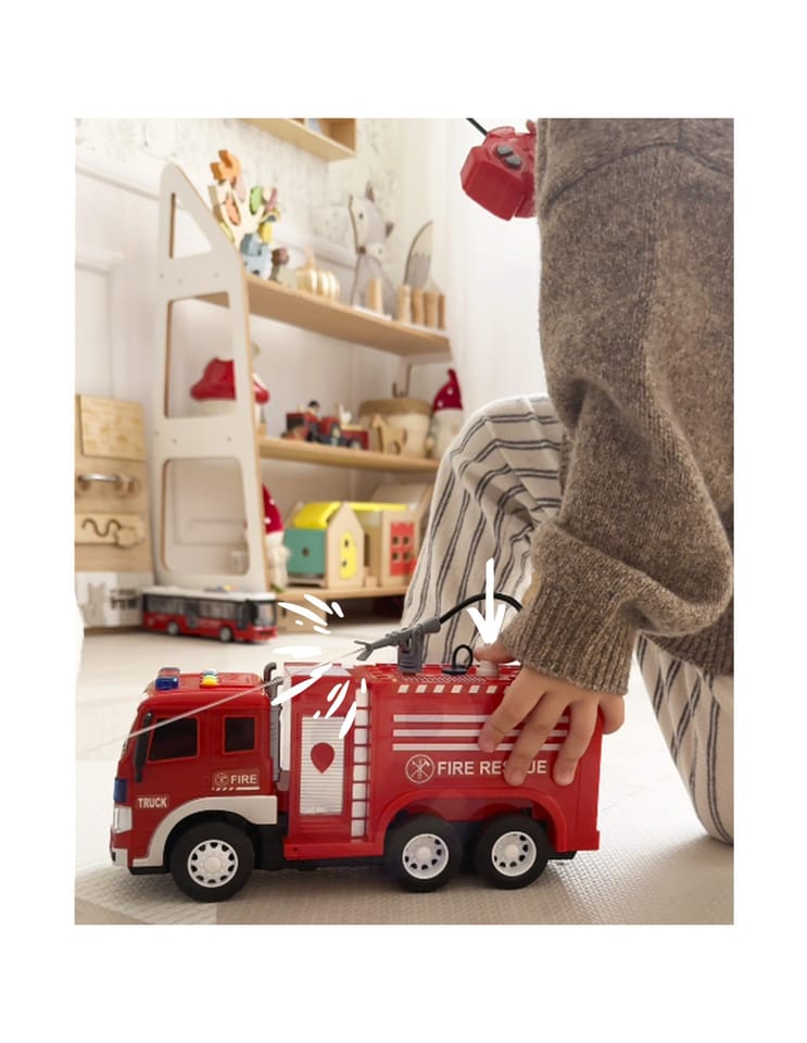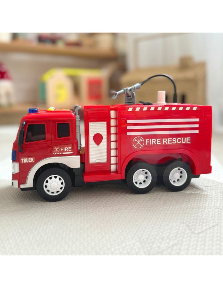 - - Realistyczne funkcje - wyposażony w autentyczne efekty świetlne, dźwiękowe i wodne, które imitują syreny, migające światła i inne charakterystyczne odgłosy pojazdów strażackich