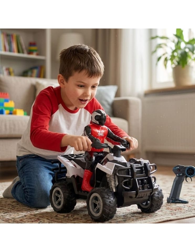 Odkryj ekscytujący świat przygód terenowych z tym spektakularnym zdalnie sterowanym quadem marki Woopie! Ten zaawansowany zdalnie sterowany model to prawdziwa uczta dla zmysłów - wyposażony w realistyczną figurkę motocyklisty w profesjonalnym stroju wyścigowym, oferuje niezapomniane wrażenia z jazdy. Solidna konstrukcja z efektownymi detalami sprawia, że zabawka przyciąga uwagę od pierwszego spojrzenia. Dzięki zaawansowanemu systemowi sterowania 2.4GHz możesz cieszyć się płynną kontrolą nad pojazdem w każdym terenie