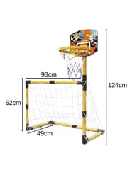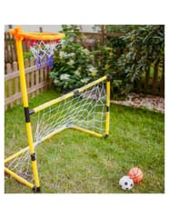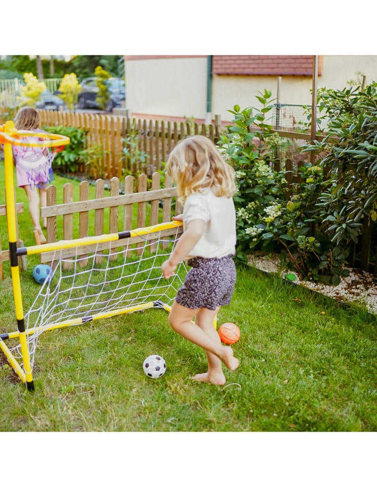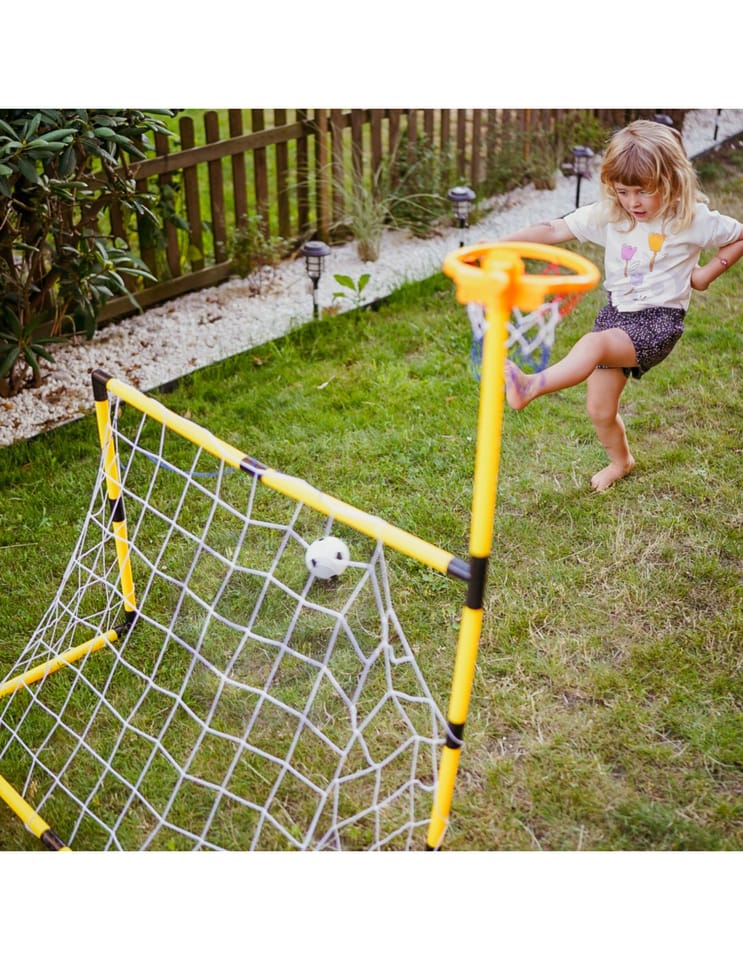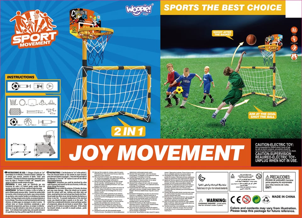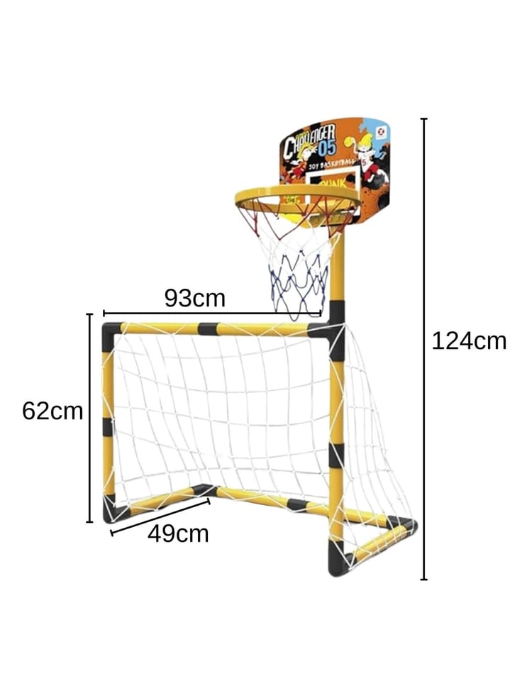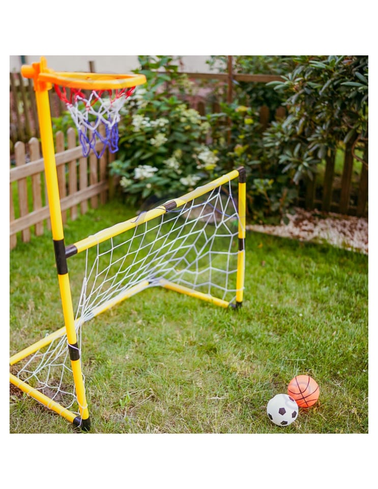 Zestaw 2w1 od Woopie to świetnej jakości zestaw, który łączy w sobie 2 dyscypliny- piłkę nożną i koszykówkę. Zestaw sportowy dla dzieci to doskonały sposób na zachęcenie najmłodszych do aktywności fizycznej. Montaż jest łatwy, a konstrukcja stabilna. Materiały użyte do produkcji są przyjazne dla dzieci. Wysokość koszykówki wynosi 125 cm, co sprawia, że jest to idealne rozwiązanie dla najmłodszych graczy. Zestaw można używać zarówno w domu, jak i na zewnątrz, dzięki czemu Twoje dziecko będzie mogło cieszyć się aktywnością bez względu na pogodę.