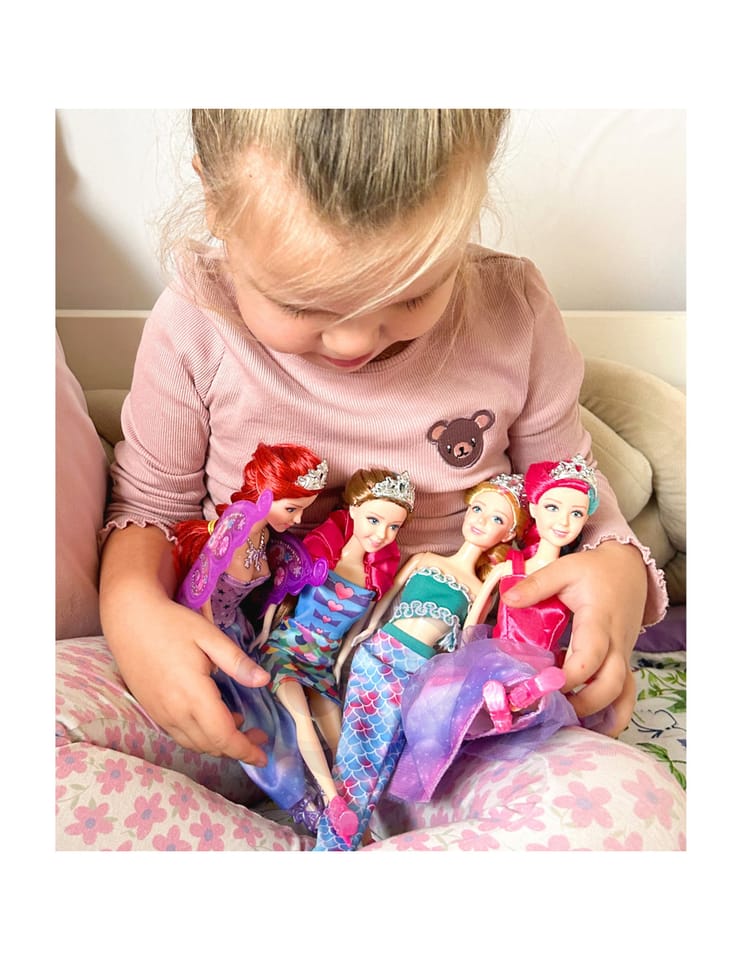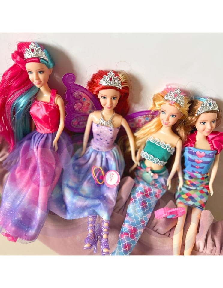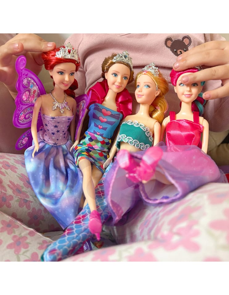 - - Zestaw 4 lalek – syrenka, wróżka i dwie księżniczki w bajkowych strojach.
