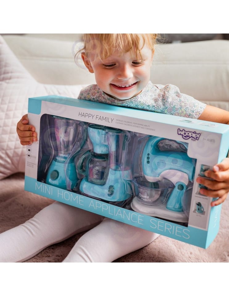 Kolorowy zestaw urządzeń kuchennych to doskonała propozycja dla małych miłośników zabawy w dom i gotowanie. Komplet w pięknym, pastelowym kolorze zawiera blender, ekspres do kawy oraz mikser ręczny, które wyglądają jak prawdziwe sprzęty kuchenne. Dzięki temu dziecko może poczuć się jak w prawdziwej kuchni i odgrywać codzienne sytuacje w kreatywny sposób. Zabawka została wykonana z bezpiecznych i trwałych materiałów, a zaokrąglone krawędzie sprawiają, że jest odpowiednia dla najmłodszych. Zestaw świetnie sprawdzi się podczas zabawy w dom, kawiarnię lub restaurację, rozwijając wyobraźnię oraz zdolności społeczne dziecka. Nowoczesny design i przyjemna kolorystyka sprawiają, że zestaw jest nie tylko świetną zabawką, ale również atrakcyjnym dodatkiem do dziecięcej kuchni.