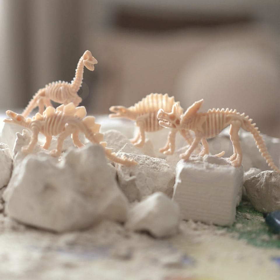 - Po całkowitym wykopaniu szkieletu dinozaura, umyj go wodą i delikatnie wysusz